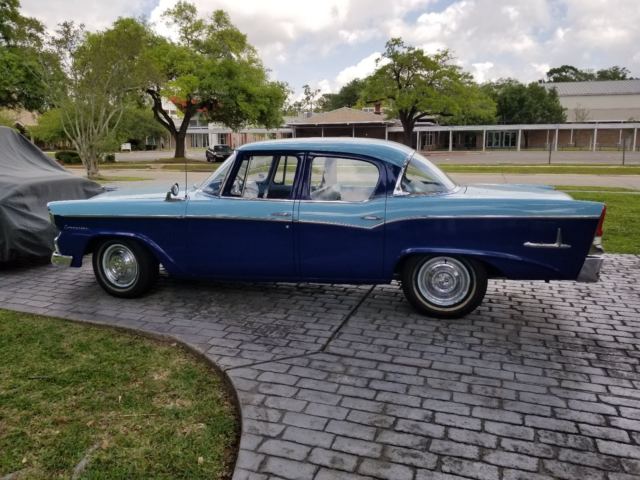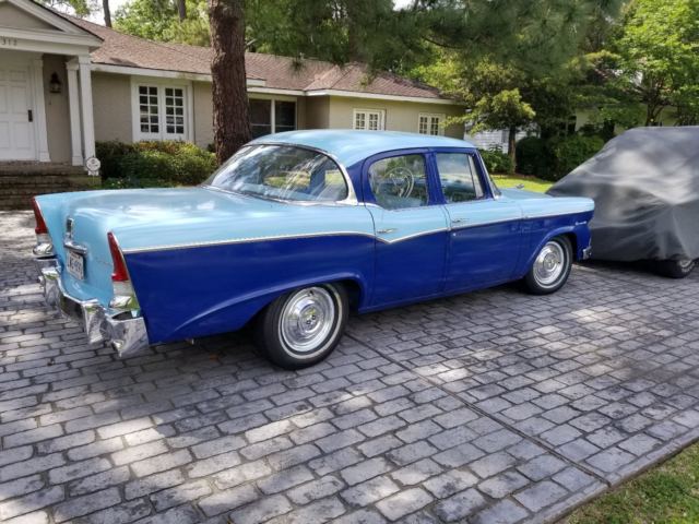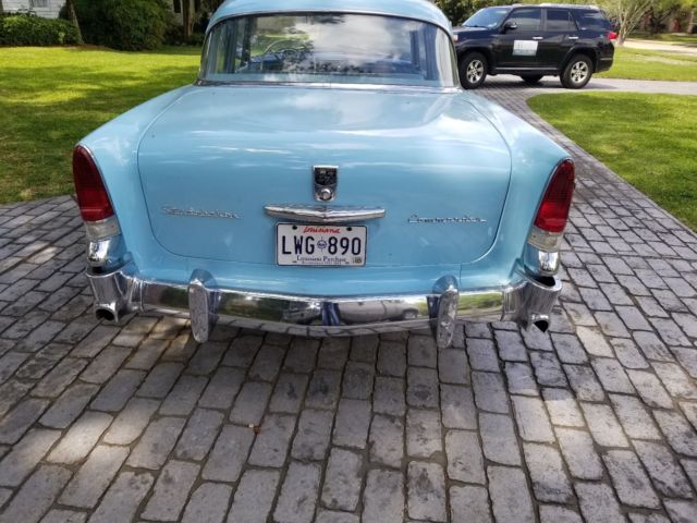 NO RESERVE!! This car is priced way below value. I purchased it on eBay about 15 years ago for about $7k and have put another $7k in it. This car gets more attention than any car I have owned including my '63 split window corvette. Really fun to drive, which I do only on pretty days. It is an awesome, eye catching car. Classic, Canadian built 1956 Studebaker Commander, blue on blue exterior, blue interior. It was purchased on ebay years ago. According to the seller at that time, the car was used in the official Studebaker pictorial calendar as well as other events including the "Mayberry Days Parade" in Andy Griffith's hometown in Mt. Airy, NC. There is a little more history....per the prior owner, it was 1st purchased in 1956 by Eugene Toft in Hamilton, Ontario where he babied it only taking it out on warm days for 12 years. When he was no longer able to drive it regularly, he coated every piece of metal, both inside & out, with Vaseline & then coated the car in wool blankets. The car was kept like this for 20 years. The original handbook is in the glove box. The undercarriage was coated years ago to prevent rust. Recently, the fuel tank was drained, cleaned & coated. A new fuel pump was put on & the master cylinder was changed as well as all 4 wheel cylinders. One brake return spring was replaced; also replaced rear steel brake lines, rear brake hose, & rear brake drums. 4 new tires were just put on the car.