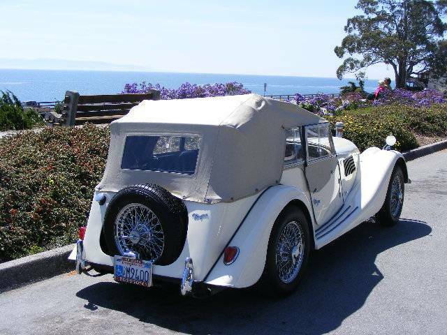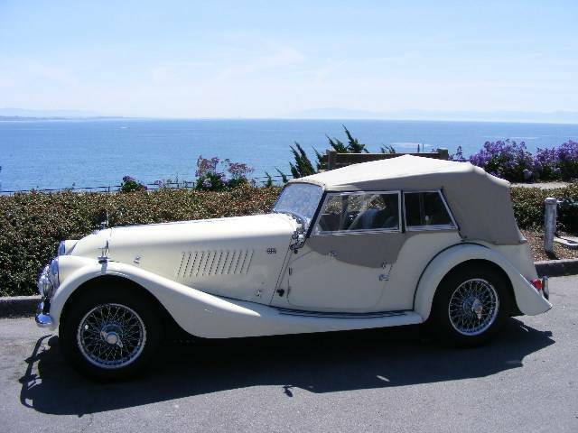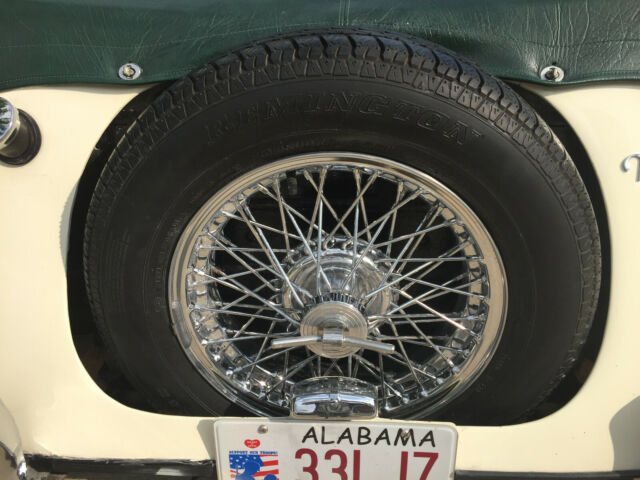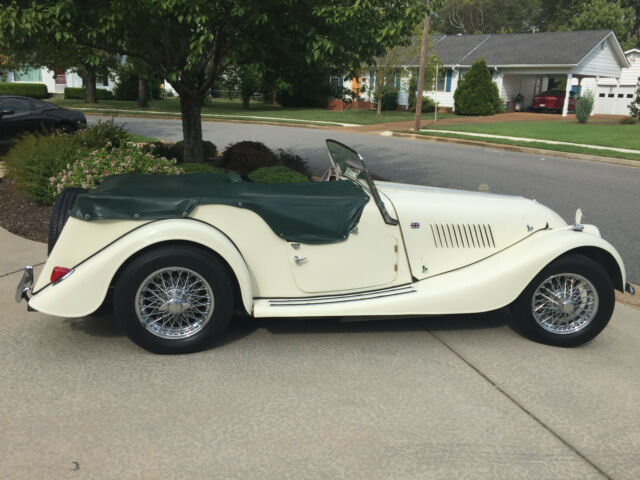This 1958 Morgan Plus 4 is finished in ivory over green and powered by a replacement Triumph inline-four paired with a 4-speed manual transmission. Modifications are limited to a high-torque starter, heavy-duty stainless steel fuel tank, and aluminum valve cover. The car was purchased in 2017, and new door hinges have since been installed. Prior to our purchase, the car was a long-time California car. This Plus 4 is offered with a soft top and side curtains, two tonneau covers, a Morgan Chassis Record, assorted literature, and a clean Alabama registration in the sellerâs name. The car underwent cosmetic refurbishment approximately 16 years ago under previous ownership in California, with the work including a repaint in ivory. External mirrors are present on both front fenders and the driverâs side of the windshield. Chrome knock off 15â³ wire wheels wear Remington tires at all four corners and on the rear-mounted spare. This car is equipped with a tan convertible top and boot, side curtains, and two tonneau covers. The original 4-spoke banjo steering wheel sits ahead of a wood dashboard containing a tachometer, 110-mph speedometer, and combination instrument showing amperage and fuel level as well as oil and water temperature. All instruments appear to be original and all function properly. The 5-digit odometer shows 31k miles. Actual total mileage is unknown. The Triumph four is a replacement from a later Plus 4 that was installed by a previous owner approximately 16 years ago. Shifting is via the original Moss-type 4-speed manual transmission. A complete service was performed by Morgan West of Santa Monica, California in 2017 prior to the my purchase. The Morgan Chassis Record is included and shows the carâs initial configuration. Assorted literature and a Peopleâs Choice car show award are included in the sale. I am selling this the Morgan on behalf of my 81-year-old father who, unfortunately, cannot easily get in and out of the car. The car starts easily, runs and drives very well, and all systems work as they should. This Plus Four is a great car! Please feel free to ask questions...