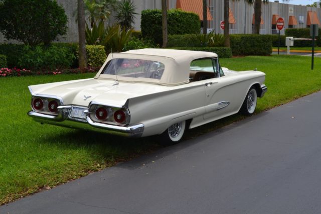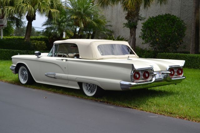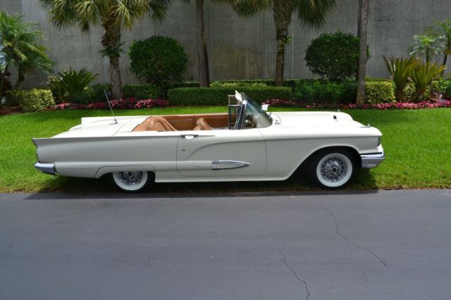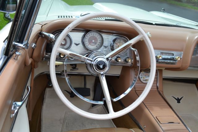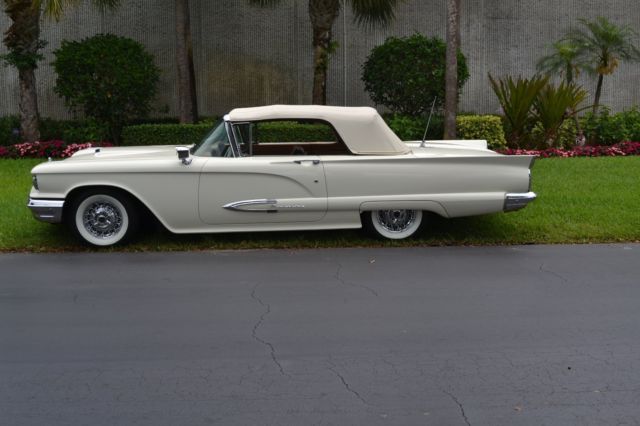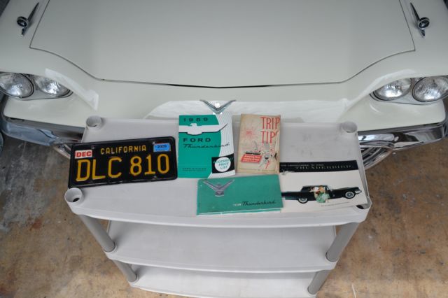Item up for sale is a 1959 Ford Thunderbird Convertible. This Thunderbird convertible features an optional J-code, 430ci. engine with 350 factory horsepower from Ford. In 1959 only 1,168 performance J-code T-Birds were produced. This T- Bird has 76K original miles, 3 owners from new. This car lived most of its life on Nob Hill in San Francisco. (Black Plate included.) Absolutely rust free, numbers matching 430 ci Lincoln Interceptor engine. This Thunderbird is fully optioned with power windows, power steering, power brakes, power seats, power convertible top disappears under the rear deck for a classic smooth styling (push button open/close control under rear deck). Additional options include Kelsey Hayes wire wheels with radial whitewall tires. This Bird also features factory option chrome packages which includes front and rear chrome light bezels, hood scoop, and spot light/rearview mirror. This T-Bird has fender skirts, rear mounted antenna and tinted glass. This car has been taken down to the bare metal with one repaint, new top and top mechanicals. Original leather interior, original manual and sales books. This beautiful Bird has been kept in a climate controlled facility from a private collection, with up to date services. A great luxury cruising car with power and timeless styling. One of equal condition recently sold at Barrett Jackson West Palm Beach for $71,000. Additional photos upon request. Please ask questions. Buyer is fully responsible for pick up and delivery arrangements. It can be viewed upon request at current location.