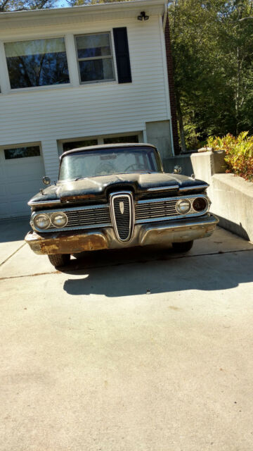 First and Foremost was planning on turning this into a Cruiser / Rat Rod. Car sat in a barn for 30 years in Indiana. This Wagon has all it's Chrome / Stainless trim Except for 1 dash knob. Front nose grill has a Whiskey Scratch and dent. Engine turns over 332, ran in 1992 was recently worked on in 2017 to get running again. The body is all there, that being said Needs Work. The Floor is gone , door rot in corners, Rocker panels either side gone. Typical back window Seal rotted, this leads to rotted out frame. Some side door windows are cracked. The Front and Rear window are in-tacked. Yes you will have to get Dirty, cut out stuff , work with metal. I planned on turning this Edsel into a Rat Rod, Front row bucket seats, center counsel , V6 turbo truck engine. That being said LOL. The Edsel Isn't Black , I was Schooled on what the numbers really stand for. 71F BE1 31 25D 3 1 BE1 B-Moon Rise Grey E- Snow White 1- area between side chrome. Not to many this Color Combo Please Check the numbers on how many have been built, and how many registered today. Not too many left operating. Please be serious with questions, ask anything. Thanks for looking
