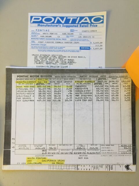 | Transmission: | TH 400 AUTMATIC | Model: | Firebird |