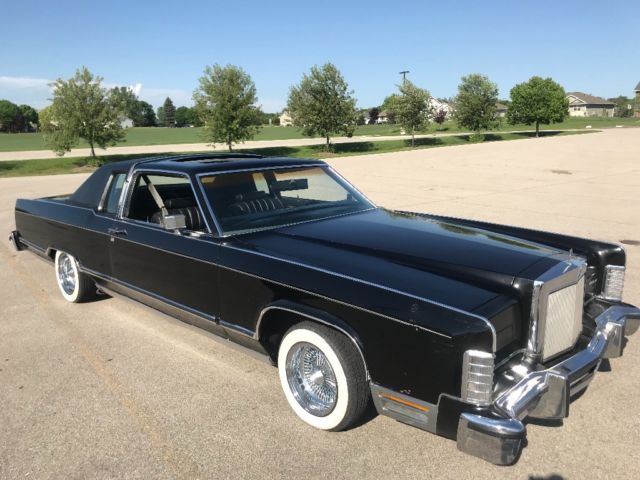 Everything is original except the aftermarket wheels to be clear itâs not a lowrider itâs a beautiful '79 Lincoln Continental Town Coupe with just 60917 miles on it and sunroof ! There are not many cars that will bring a smile to just about anyone's face like this gorgeous Lincoln. Everyone that sees it comments on it and everyone you drive past on the street will double-take because you just don't see many of these cars still on the road, especially in this great of condition! It is the last of the truly full-size V8 American cars with black leather interior and big metal bumpers. Under the hood is a smooth 400 cubic inch V8 engine that pushes the car along with ease. The car has beautiful black color vinyl top, chrome bumpers and grille and a factory set of tires ,the aftermarket wheels are for sale separately for aadditional $800 One thing is clear about this Lincoln, the interior has a small crack on one of the seats and new black carpet Otherwise It's all in amazing condition! This Lincoln comes with power options than many new cars including power windows, power locks, power mirrors and even a power driver's seat so you can find just the right position to enjoy cruising to the car show. The car also comes with an pioner stereo and speakers for your listening enjoyment. There is a power antenna, cruise control and fully-functioning air conditioning as well. In fact, all of the options work just as they should. this Lincoln runs and drives as good as it has new rear brakes new Oil change one important thing the car has a little bit of rusty on the front passenger side bumper itâs just small that you even canât see it ,the rear right passenger light is cracked and needs new polished because the paint looks a little bit old other then that the car still running like new