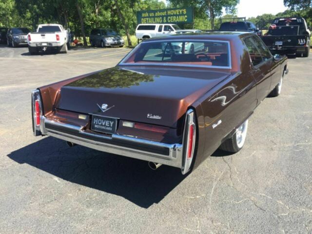 Best Offer Available1974 Cadillac Sedan Deville RestomodSee more photos belowTop Line InformationYear:1974VIN:6D49R4Q166883Make:CadillacModel/Trim:Sedan Deville RestomodCondition:Pre-OwnedBody:SedanExterior:BrownEngine:472 v8Interior:Red LeatherTransmission:Automatic Mileage:2,589Drivetrain:Rear Wheel DriveAdditional Photos* * * Click Photos to Enlarge * * ** * * Click Photos to Enlarge * * *Phone: 210-384-0084DescriptionThis is not your Fathers Car....1974 Cadillac Restomod Sedan, Receipts for $50,000 yes for REAL, 500 HP 472 Cadillac Racing Motor, Custom Aluminum radiator, MSD ignition, EFI, New fuel tank, Turbo 400 Transmission with Gear Vendors under/overdrive, Leather interior, New carpet, dash, Front seats, Sport Mirrors, Shaved Door handles with remote keyless entry, Custom Metallic Root Beer Metallic Paint $13,000, Custom Valve Covers, New Cadillac Wire Wheels and Coker 2 inch wide tires, ONLY 2500 on car since restoration....This is a RADICAL RIDE and is MINT SHOW QUALITY and Condition! 210-384-0084 Hovey MotorCars has some of the Most UNIQUE, Specialty, Classic, Special Interest Vehicles in the WORLD! Free Donuts and Coffee, we help and support Veterans!At our dealership we work very hard to accurately describe our vehicles through text descriptions and elaborate photos. When you purchase a pre-owned vehicle it is not a new vehicle. Any used vehicle can have normal wear and blemishes. Before placing a bid please read the descriptions thoroughly and view all pictures. Included Standard Equipment Hours of OperationMon: Tue: Wed: Thu: Fri: Sat: Sun: 9:30a - 7p9:30a - 7p9:30a - 7p9:30a - 7p9:30a - 7p9:30a - 6pClosed Vehicle ValuesTravelVehicle HistoryInsurance Warranty FinancingLet us help you finance your next vehicle. Begin by clicking the credit application button, print, and fax us your completed application.Our finance team will work to get you the best financing options available. TermsPayment Types:Certified Funds and Institutional FinancingFees:Out of State BuyersOut of state buyers are not charged tax, title, or license. The customer is responsible for registering the vehicle in their home state.Taxes and FeesIn state buyers will be charged state and local taxes, title, registration, and documentary fees. Our documentation fee is $125.00 All sales transactions must be completed within 5 days of auction close. DepositWe require a $1500 deposit within 3 days of winning the auction. Please call the dealership to make arrangements for payment.Terms:Auction PoliciesCustomers with zero or negative feedback on eBay Motors please contact us prior to bidding. Otherwise, we reserve the right to cancel your bid. Understand this is only to protect the integrity of the auction. Winning bidder must contact the dealership within 24 hours of the auction close and the purchase transaction completed within 5 calendar days. We reserve the right to re-list or sell the vehicle in the event of a non-paying bidder.Buyer PickupA representative from our dealership can be available for pickup at area airports when necessary. Buyers must schedule pickup prior to making travel arrangements. TransportFor 50 years DAS has been the industry leader - providing quality vehicle relocation services.DAS owns and operates its own fleetDAS has dedicated customer service repsDAS provides online satellite trackingDAS provides choice of open or enclosed carriersDAS offers true Door-to-Door service optionsCall Today! 800.242.6413 Hovey Motorcars30775 IH-10 WestBoerne, Texas 78006Phone: 210-384-0084 ©2003-2019AutoRevo- All Rights ReservedDealer Websites and eBay Templates Powered byAutoRevo