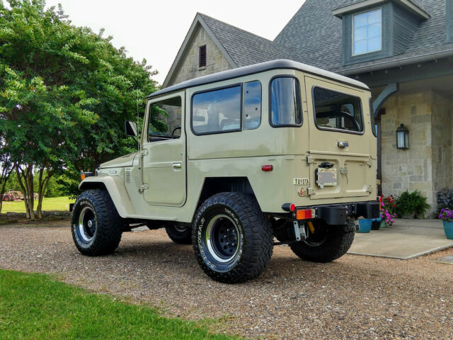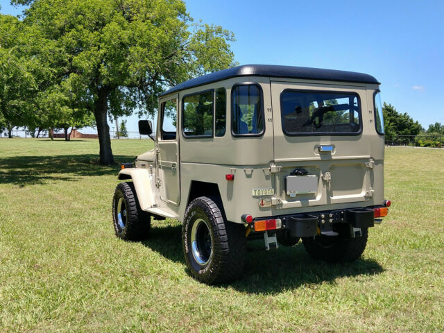 This is a beautiful 1974 Toyota FJ40 that received a complete restoration just 2200 miles ago. Everything was completely re-done, it is in like new condition and needs nothing but to be driven and enjoyed. The tan exterior paint looks great and all panels are as straight as can be. The interior is like new. With tastefully re-done, very comfortable leather front seats and fold down rear seats to match. Aftermarket locking center console for convenience. New Retro-Sound bluetooth stereo gives the old school look with modern convenience. The dials and all guages are all in like new condition. The 6 cylinder engine has been completely re-built and runs perfectly. The 4 speed manual transmission shifts smoothly and the 4WD works as it should. The underbody of the vehicle is as clean as it is up top. There are no leaks or rust of any kind. This vehicle has been done right. It needs nothing and is ready to enjoy for many years to come. Must see to truly appreciate. Let me know if you have any questions or if you would like to arrange to see the vehicle.