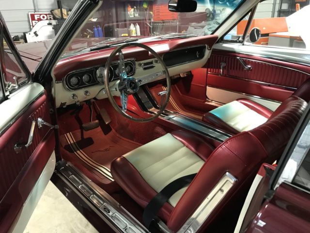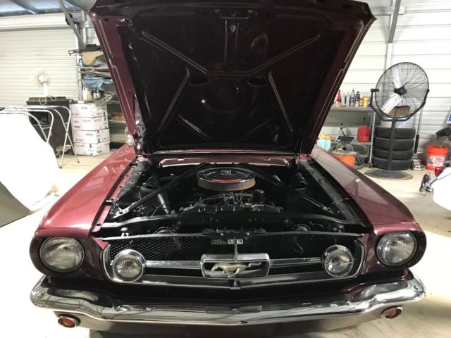Up for consideration and with great reluctance I'm selling from my private collection one sweet 65 Stang. Car started in San Jose Ca and found it's way to GA where I took the car from metal to what you see now. This is a c code automatic and highlights are: New two tone pony interior New top 15k PPG paint job in ford mustang burgundy Borgensen steering system .. a must! Original 289 motor bored .40 over and starts up on the first turn every time Replaced 2BBL carb and intake with an original 65 4BBL intake and holly carb. Rebuilt C4 auto trans shifts smoothly Disc brakes in front..new brake job 550 miles on the motor rebuild. Just about every nut and bolt media blasted, painted as it would from the factory New gauges and GT door panels. Flowmaster 50 dual exhaust Undercarriage prepped and coated with stoneguard. Floor pans, sills, pillars and all metal is just that .. metal. No rust car. I have over 45k invested in this car with proven records so my loss is someone's gain both as a solid driver but also a VERY solid investment. What I do not have (since it's not required in GA) is a title. Car is sold with Bill of sale and prior registration car signed etc. I have the car for sale locally in GA and if sold will close auction early. I encourage inspection as there will be no disappointment. No tire kicking ... I know who you are
