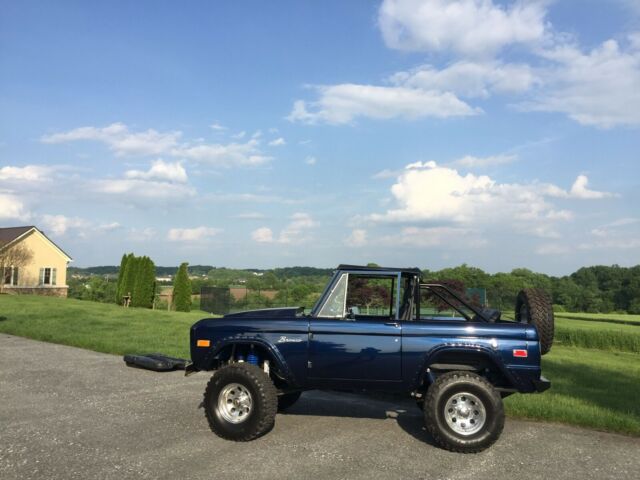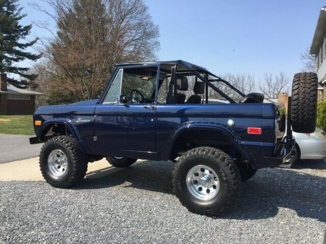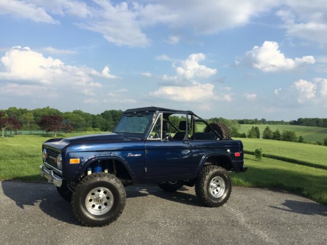 Relisted: Previous sale fell through. Full frame-off rotisserie restoration. Highest quality paint job I've ever seen on a classic car. I took a few exterior pictures so you can see how the color looks in the different light (unfortunately they do it no justice!). I have put about 1500-2000 miles on it with ease, the builder put less than 300 on it since completion when he had it. This truck is of the highest quality I have seen, it runs amazing, sounds even better and gets all the attention at shows. It's ready to be enjoyed. Call Michael for inquiries 443.844.4175 Exhaust Sound Video Link (should work even if you don't have an instagram): https://www.instagram.com/p/Bsim61lAaGo/?igshid=5xxko38nl1ck More Pictures available upon request. Specs:1975 Bronco body with all ORIGINAL Ford sheet metalIt actually sits on a 1976 chassis that came with factory disc brakes 351 Windsor Engine completely rebuiltAutomatic Trans MSD ignition Ceramic headers Custom Stainless exhaust (Flowmaster Mufflers) Holley CarbFront Power Disc brakes (Ford Booster) Stainless Brake lines Custom steering components makes it comfortable to drive at highway speedsFord rear has 4.11 gears Mickey Thomson Aluminum Wheels Procomp TiresCustom cowl hood made from the original steel hood (amazing attention to detail!!) Oversized gas tank 21 gallons +/-Upgraded interior Bikini topDuff suspension kit 3.5" liftAlmost all of the hardware is Lawson hardware or stainless. All brand new hardware of the highest qualityCustom roll bar made from race grade tube Polished stainless door hinges (almost everyone paints them and they chip no matter what, but no issue here) Power steering (fast ratio) New driveshafts Four (4) row radiator Oil coolerOil filter rerouted (so oil doesn't drip on the frame at all, very convenient if you do your own maintenance) All original glass All sheet metal is factory FordCut fenders Aftermarket rear bumper and spare tire mount with full-size spare Frame painted in the highest quality chassis black unlike a lot of the "high end" custom buildsBody paint is beautiful, and the clear coat is one of the best you can buy. Probably missing some things but come out and take a look or let me know if you have any questions!Thanks for looking!