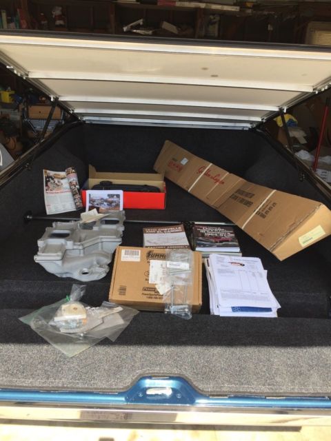 Not only does it have Power Steering, Power Front Discs, and Tilt Steering but it has been updated with a Tremec 5-speed manual transmission, a Vintage Air AC system, Dakota Digital VHX gauge cluster, and a Retrosound Bluetooth Stereo.The engine is a 383 stroker motor with Edelbrock manifold and Rochester carb. It runs Dougs headers through flowmaster mufflers and Stainless Works GTO splitter exhaust tips. The Tremec 5-speed connects to a GM 10 bolt with an Auburn Gears posi unit (3.42 ratio). The front suspension was rebuilt, with poly bushings, KYB shocks, and CPP lowering springs. The BFG Radial TAs and American Racing Torque Thrusts have less than 3500 miles on them. The interior is brand new with many OPGI goodies plus ProCar seats, LeCarra steering wheel, as well as a Hurst shifter and the above mentioned AC, gauges, and stereo. To keep your cargo safe and secure I have added a Craftec soft tonneau cover along with a Bedrug marine carpet bedliner. I have owned it for 8 years and have all restoration and parts receipts. The paint does have a bubble on the driver side roof and the chrome on the front bumper has peeled in one place (see pictures). The rest of the sheet metal is solid. I have extra parts (including a new front bumper shown in picture) that will all be included with the sale. This is a great weekend cruiser that loves doing 70 mph on the open highway at 1900 rpm. Contact me if you have any further questions and Happy Bidding.