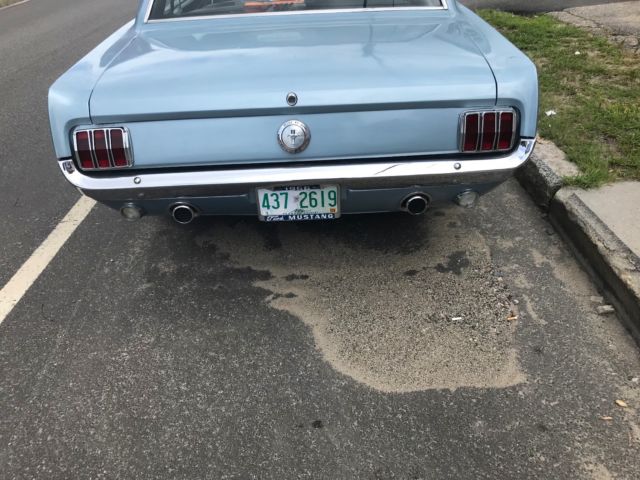 NOW WITH 3 STAGE NEW PAINT AND ALL NEW CHROME. THIS CAR IS TITLED IN NEW HAMPSHIRE AND I HAVE THE ORIGINAL KEYS ISSUED FROM THE FACTORY BUT BUT BUT THE TITLE AND THE ODOMETER MATCH AT 68,345 MILES.... THAT ONLY 1307 MILES A YEAR.... 1,307 MILES A YEAR.. TALK ABOUT A BARN FIND...... YOU CAN BE THE ONLY ONE IN YOUR STATE WITH A 52 YEAR OLD CAR WITH ONLY 68,000 MILES ON THE ODOMETER. ALL RUST WORK HAS BEEN COMPLETED AND THIS CAR HAS PASSED NH INSPECTION STANDARDS AND IS CURRENTLY REGISTERED AND READY TO GO. THE INTERESTING THING IS THAT THE CAR IS A 6 CYLINDER WITH DUAL EXHAUST THRU THE REAR VALANCE THAT SEEMS TO BE FACTORY. THIS BABY ALSO HAS GT LIGHTS AND ALL THE BELLS AND ALL THE WHISTLES YOU WOULD EXPECT. PLEASE LOOK AT THE PICTURES CLOSELY AND YOU WILL SEE THAT THIS CAR IS A HOME RUN AT ANY PRICE. I DID FIND THAT THE LIGHTS MAY HAVE A LOOSE WIRE SOMEWHERE AS THEY WORK BUT ON OCCASION, FAIL TO FUNCTION PROPERLY. CHECK MY FEEDBACK,,,,,, I HAVE BEEN SELLING THESE MUSTANGS FOR 20 YEARS AND STAND ON ME FEEDBACK AT 100% POSITIVE. I HAVE SOLD HUNDREDS OF THESE 64-66 MUSTANGS BOTH LOCALLY AND ON EBAY AND KNOW THEM WELL. THIS IS A NICE. AND AT THE PRICE ITS SUPERIOR... IF YOU ARE NOT LOCAL I WOULD WELCOME YOU CALLING ANY LOCAL INSPECTION GARAGE HERE IN NH AND THEY WOULD VERIFY THE CURRENT INSPECTION OR THEY COULD COME TO MY REAL ESTATE OFFICE IN MANCHESTER, NH AND INSPECT THIS CAR FOR AROUND $100.00.. FOR YOUR PEACE OF MIND IF YOU NEED. I HAVE SEVERAL OTHER 64,65,66,67 MUSTANGS IN THE PIPELINE SO CALL OR TEXT IF YOU ARE LOOKING FOR A DIFFERENT COLOR OR DRIVE-TRAIN. I HAVE A TRIPLE BLACK COMING OUT OF THE PAINT BOOTH NEXT WEEK. THAT TOO IS A 6 CYLINDER TRIPLE BLACK WITH ALL BLACK INTERIOR. STUNNING AND A STEAL AT $12,900.00 GOOD LUCK PO I NOTICED WHILE TAKING THESE PICTURES I FOUND A DRIVERS SEAT SEAM SEPARATION (ABOUT 2 INCHES, THAT IS IN NEED OF BEING REATTACHED. JUST A NEEDLE AND PLASTIC TREAD. HEADLINER IN NICE ALSO.... THE OWNERS MANUAL ON THE FRONT PASSENGER SEAT IS NOT THERE TO COVER ANY DAMAGE. SEAT IS IN GOOD CONDITION. IF YOU WERE WONDERING SORRY TO BE SO LONG WINDED BUT THIS CAR IS WORTH IT . PLEASE CALL ME IF YOU HAVE ANY QUESTIONS AND BID WITH CONFIDENCE. I CAN ASSIST IN SHIPPING OR YOU CAN COME DRIVE HER HOME...JUST BRING PLATES. DONALD 603-661-3853