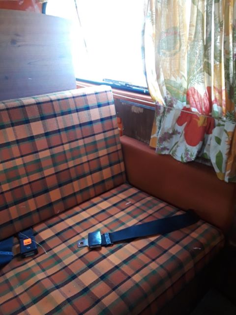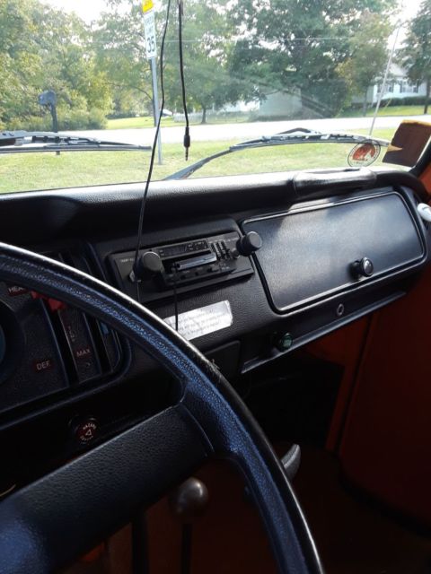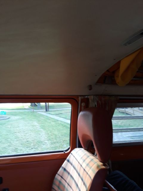 The underbody appears to have been undercoated back around 1985 which kept the undercarriage in good shape. A professional shop that specializes in VW bus rebuilds was hired to perform all mechanical system repairs and upgrades to make sure the vehicle was mechanically sound. Most systems were replaced including new brakes, new tires, new gas tank, new sending unit, electronic ignition plus much more. Engine was removed and updated as well. New camper top plus all upholstry is original and still in decent shape. This is a driver and great vehicle for crusin around town or going on an adventure. I removed most of the camper cabinents(yes I still have them) and I put an extra bench seat for additional seating for the family. The original table still folds out in the back. This bus is starting to show its age from a cosmetic standpoint. It could really use some rocker panel work and a paint job is in order soon. I would like her to go to someone who is willing to put the extra cosmetic work to bring the body back to full restoration. I would do it, but wife said not allowed to put any more bucks into her. This is not a perfect Camper, but a heck of a lot of fun that gets a lot of looks(and peace signs).