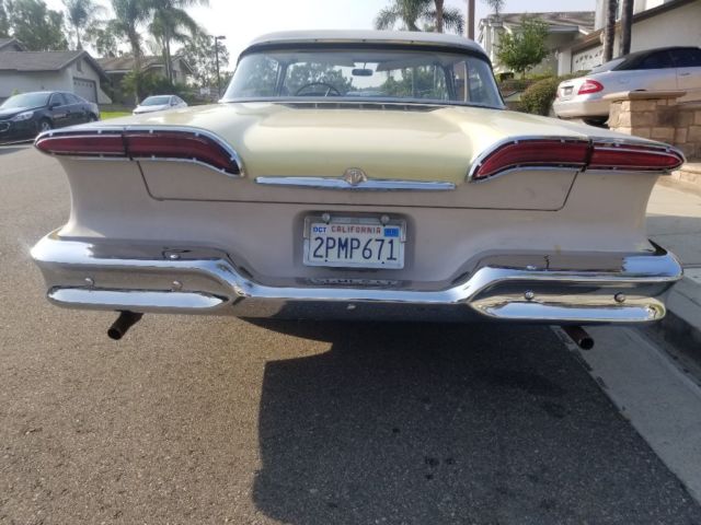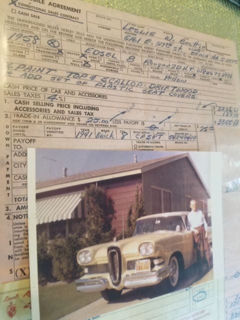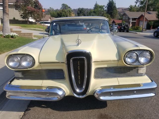 Call for further information, this a private sale on ebay, this a outstanding vehicle it was garage kept, for years there's lots of documentation of mileage, service, addresses, amazing history to the edsel even original buyer who traded, his 41' buick for it, got $ 25.00 lol...now for good the tele touch system working ,clock , p/s ,am radio working, interior is unmolested, hood and trunk cardboard in beautiful condition aswell, and RECHROMED BUMPERS ...and more call me if needed 909.287.5197, the car was purchased by body in Los Angeles area they started the work, which by the way were only scratches, NO DAMAGE WHAT SO EVER WAS EVER DONE, VEHICLE RUNS AND DRIVES BEAUTIFUL, STARTS RIGHT UP.SPEEDO WORKS HORN!.. TURNS RIGHT OVER HOLLEY 4 BBL.SOUNDS GREAT BUT WILL NEED NEW EXHAUST SYSTEM IT'S THE FACTORY PIPE..BUT PREFERABLY NEEDS TO TOWED AND GONE THRU, FOR SAFETY REASONS. ...IT IS A 32K MILE CAR NO RUST NO ISSUES...anywhere IF U NEED ANYMORE PIX I WILL BE POSTING OR CALL ..ME,TOMORROW UNDER CARRIAGE ..WELLS AND UNDER DASH..BEAUTIFUL ..LOOK UNDER DASH LIKE NEW... Every CAR SHOULD LOOK LIKE THIS.. but video with the engine running and driving please ask
