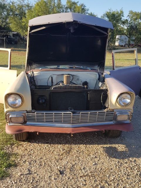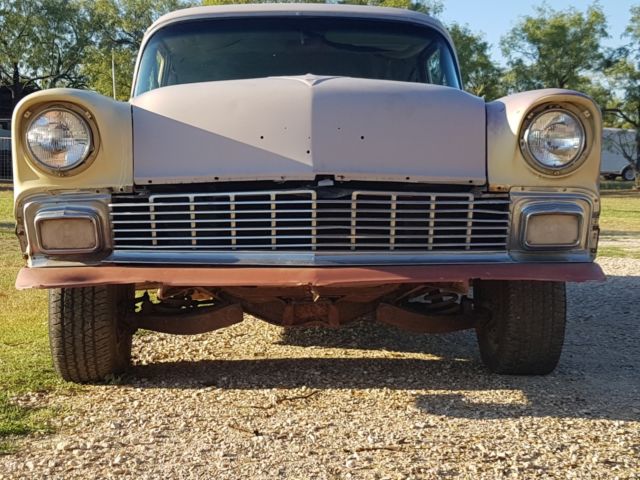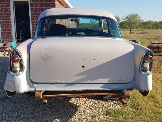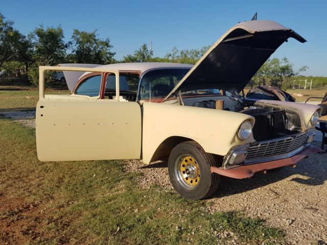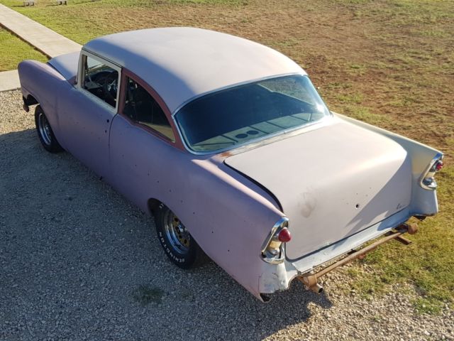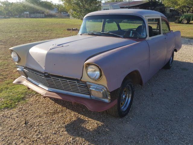 This is a beautiful 1956 Chevrolet 210 Post- the highly sought after second generation Delray trim for sale in San Angelo, Texas. A perfect project car!! View the Video Walkthrough here: https://youtu.be/zjM9reB-2UI Body and paint Body is super solid- No major damage. Needs very little Bondo or touch-up work but is 95% original! Paint is primered. Interior Interior is in good shape- welded one floor panel in the interior passenger side. Headliner upholstery needs attention. We include the door panels, racing bucket seats, weatherstrip and window door trim as seen. (Back seat not provided). Glass and chrome Windshield and back glass are solid. Missing one side glass for back seat but all other 3 interior panels are provided even though the colors are mismatched. No door windows or crank systems. We have replacement chrome spare parts provided in the pics to include the bird, trims, rear bumper and corners. (Front bumper not provided) Engine Equipped with a V8 283 engine (replaced from original), dual exhaust. Last driven in 2006, last inspected in 1995. Car has been sitting for a while so it could use a good tuneup and carburetor adjustment but still fires up and runs. (Battery not included in sale) Transmission: **Original transmission- numbers matching**. Modified from column to 3-speed floor shift, not a Muncie. Undercarriage and trunk Most of the undercarriage is in good shape- it has never been under coated. We welded a front passenger floor panel and extremely small, visible rust can be seen underneath and in spots along the front wheel well. Trunk compartment is clean and rust-free. We have clean title, car was purchased by a neighbor in 1987. Only driven 200 miles. Odometer reads 81,000.If you have any other questions, we will be more than glad to answer - please contact us via email or through this site. Terms of auction: A $1,000 non-refundable deposit is due immediately upon close(via paypal, square, or bank transfer) and remaining balance to be paid upon pickup or delivery. Cash in person or bank transfer 3-5 days before pickup for remainder of balance.(NO PERSONAL CHECKS, cashiers/bank checks, No paypal or square for balance). **BUY IT NOW PRICE OF $10,000** Shipping: We can deliver anywhere in the continental U.S.-we can offer a free estimate/quote/mutual date(s). Otherwise, buyer arranges pickup. Vehicle only released until full payment is cleared. We can store the vehicle for as long as needed if payment is made in full. Please note: This is not an invitation to win the auction- then have the vehicle inspected. Vehicles to be inspected before end of auction. Full walk-thru here: https://youtu.be/zjM9reB-2UI The Car is being sold AS IS with no warranty. No battery, rear bumper or back seat included. Please provide instructions for title release if shipper involved.