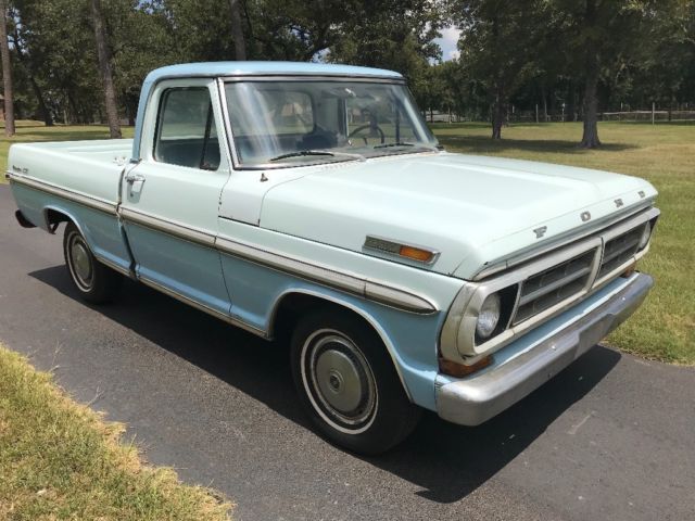 1971 Ford Ranger XLT Short bed. 2 owner truck, all original. 302 V8/auto C4 trans. Very rare color combo. Truck is 100% original. Runs and drives great, trans shifts well. Has new fuel lines, brakes, brake lines, and flowmaster exhaust. Body is exceptionally straight, has all the stainless trim. Cab corners, floor pans, and mounts are all solid. The seat cover, dash pad, and carpet is all original. Everything on the truck is completely original. There's a little rust underneath the hood ledge, a small area on passenger lower fender, rear of the bed floor, and some bubbles in the lower cowling area as well. It doesn't take away from the look of the truck, and if you wanted to fix it it could be done rather easily. Truck presents it well. It's hard to find these short bed Ranger XLT trucks, even harder to find a original paint truck. Would make for a great build, or drive it as is. Everything functions as should, including the windshield washers and dome light. Only thing I'm aware that doesn't work is the radio (may be the fuse, haven't checked it) and the fuel gauge, probably needs a new sending unit. Still has original jack and spare. Will include a Marti report with the sale. Don't need help selling, NO trades. Call 832-661-2453 for honest answers. Can send more specific pictures upon request.