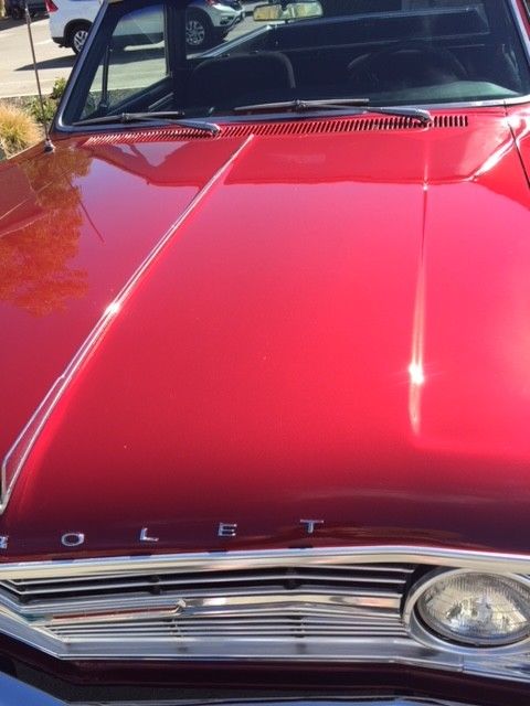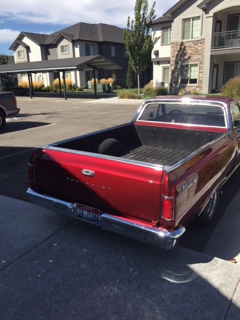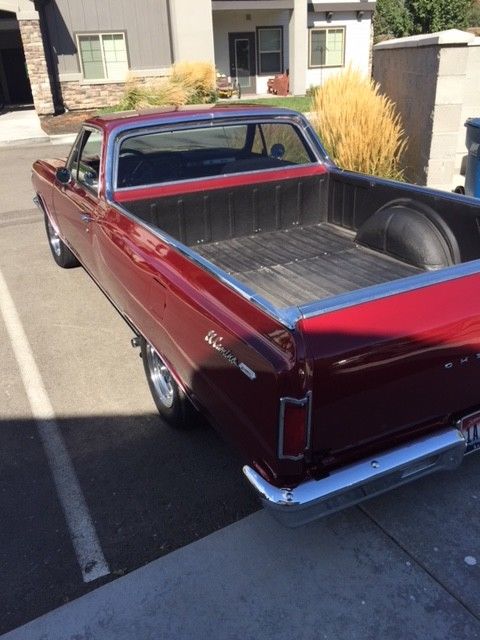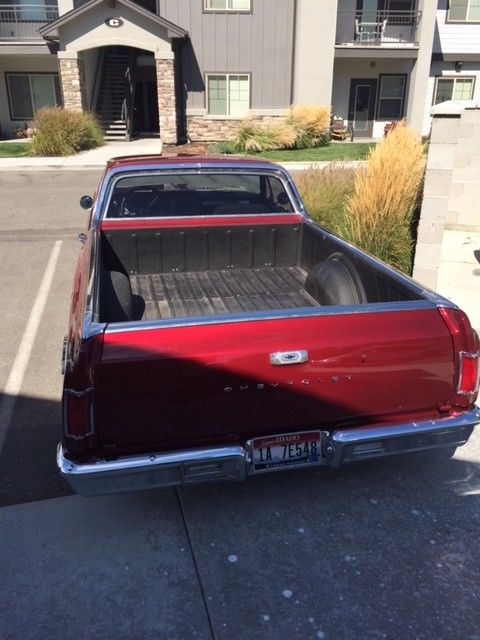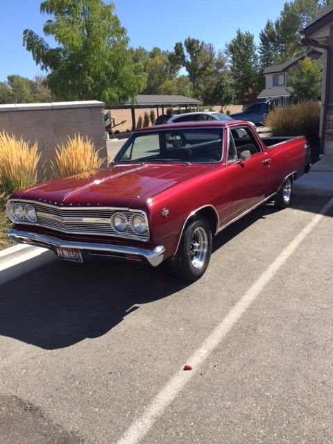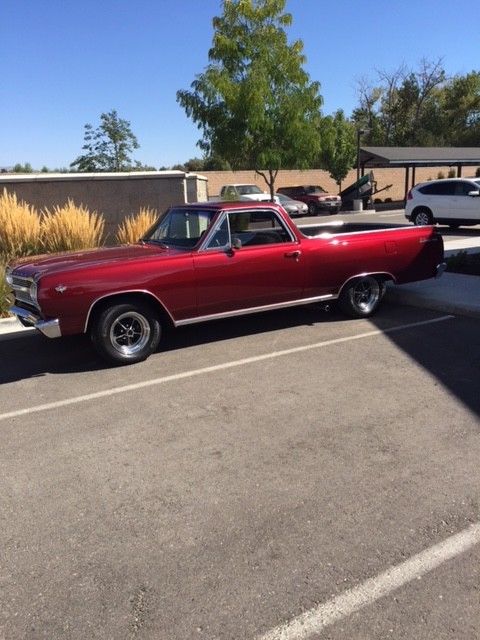 RARE matching numbered car that speaks for itself. This car is 53 years old and turns heads -- it was made to drive! History: This El Camino has been in the same family until about 2008 when it was purchased by their neighbor. I purchased it in 2013. I was told it's been in the Boise, Idaho area its entire life. Description: This rare vehicle, with matching numbers, includes the following: L 74...327/300hp, rebuilt at 109,475 miles (approx. less than 250 miles ago) at about 335 hp. The tranny is a 2 speed PowerGlide and 3:71 rear gears. This includes new rear air-shocks, and coils and front shocks. New wiring, brakes- alignment, shocks and coils; all new oils- fluids-filters. Factory A/C up-dated. Many new chrome pieces. Original tire jack. M35= 2 spd tranny; N10= dual exhaust (new); N40= power steering; original spare tire jack. Lifted body off for new body-mounts. The Cowl Tag is 05B (05-May, 2nd week). K=Kansas, Mo....rear-end ratio is 3:71; ST 65-13680... (1965-Custom)...EUC=(euclid,Ohio);....9812= Body Fisher;...CC...Ermine White body, turquoise interior......5W= Seat Belts. Finally, 327 c.i. engine at 300 hp. Known options ordered by original owner via codes: TAG # W2KMP3C ......Means: W= See Options: 2= Push Button am/fm radio K= Factory A/C M= 2 spd. tranny P= Comfort/Convenience, Group 3= gauges, clock, 2 horns (with different tones) C= padded dash Options by code A01= Soft Ray tinted side glass and rear window A02= Tinted windshield A49= Retractable seat belts B85= outside chrome moulding B70= Padded Dash C14- washer/wiper C60= Factory A/C D32= 2 outside mirrors D31= Tilted interior mirror G67= rear air level control L74= 327/300hp (cast #3782870) N10= Dual Exhaust System (new) Z01= outside rear back-up lights AND glove box light #2= AM/FM Stereo NOT original: the tranny cooler and front disc brakes, newer outside paint color (Cherry Red with gold flake) and interior ( black) with newer bucket seats. Shifter was moved from column to the floor with stock console and shifter. Aftermarket tach. Rhino bed.