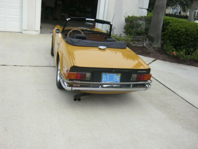 IF YOU ARE LOOKING FOR A WONDERFUL TRIUMPH TR6 LOOK NO FURTHER!!!!!!!!!!!!!!!!. THIS 1971 TRIUMPH TR6 HAS LESS THAN 42,000 MILES ON IT. I AM RELISTING THIS CAR BECAUSE A PRIVATE BUYER REFUSED TO ANSWER MANY E-MAILS SENT TO THEM AFTER PURCHASING THIS CAR, SO IT IS BACK ON THE MARKET. THIS IS ONE WONDERFUL CAR!!!!. I PURCHASED THIS CAR IN JULY OF 2019 AND THE ONLY REASON I AM SELLING IT IS DUE TO A PULMANORY ANNURISM I SUFFERED AND THE SIGHT IN MY RIGHT EYE IS GONE.THE CAR WAS COMPLETELY REPAINTED ABOUT 8 YEARS AGO, THE PAINT IS ALMOST PERFECT, YOU CAN SEE BY THE MANY PICTURES, IT SHOWS EXTREMELY WELL. THE ENGINE COMPARTMENT IS "SPOT LESS". NO DENTS, A VERY LIMITED NUMBER OF VERY MINOR CHIPS AND NO PAINT RUNS. OVERALL, I WOULD RATE IT AS A MID 8 TO A 9. WHILE THE PAINT IS NOT PERFECT YOU WOULD BE HARD PRESSED TO FIND A NICER PAINT JOB AND CAR. THE CAR HAS A STOCK FACTORY NUMBERS MATCHING ENGINE, INLINE 6 CYLINDER, RUNS STRONG, NO SMOKE FROM TAILPIPE, NO MAJOR OIL CONSUMPTION AND IS A SMOOTH RUNNING ENGINE/CAR.THE CAR HAS A LIKE NEW TONNEAU COVER (SEE PICTURES), CONVERTIBLE TOP BOOT AND A NEW CONVERTIBLE TOP (SEE PICTURES) THAT NEEDS TO BE INSTALLED, (ESTIMATED COST LESS THAN $500.00.), SPARE GRILL AND TR6 MARKING BAR, NEEDS TO BE INSTALLED (LAST PICTURE). EVERYTHING ON THIS CAR WORKS EXCEPT THE WINDSHIELD WASHERS (MOST LIKELY A FUSE), THE PASSENGER DOOR LOCK, EVERYTHING IS FUNCTIONAL BUT THE KEY TO THE PASSENGER DOOR IS HARD TO TURN AND THE DASH LIGHTS APPEAR NOT TO BE WORK (AGAIN, MOST LIKELY A FUSE). INTERIOR IS LIKE NEW, NO RIPS. SEATS ARE IN EXCELLENT SHAPE.THE CAR STARTS GREAT, DRIVES GREAT. HAS LIKE NEW TIRES AND REALLY IS A JOY TO DRIVE. THE LAST 2 PICTURES ARE THE FRAME AND UNDERSIDE OF THE CAR. THE FRAME IS IN GOOD SHAPE, NO MAJOR RUST.THIS TRIUMPH TR6 IS GOING TO MAKE SOMEONE A GREAT CAR!!!!!!!!!!!!!!!!BUYER PAYS ALL SALES TAX, LICENSE FEES AND SHIPPING COSTS. NO WARRANTY OFFERED, SOLD AS IS WHERE IS, NO EXCEPTIONS. IT IS RECOMMENDED THE THE BUYER SHIP THIS CAR IN AN ENCLOSED VAN.THIS TRIUMPH IS LISTED AT A STARTING PRICE OF $21,000.00 AND WELL WORTH EVERY PENNEY, HOWEVER, MAKE ME A REASONABLE OFFER AND IT COULD BE YOURS. BUY IT NOW PRICE OF $23,000.00!!, OR MAKE ME A REASONABLE OFFER!!!!!!!!!QUESTIONS, E-MAIL ME AT; stevesiegrist@msn.com OR FEEL FREE TO CALL ME AT; 904-294-4630.GOOD LUCK AND HAPPY BIDDING!!!!!!!!!!!!!!!!!!!!!!