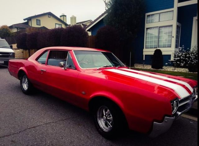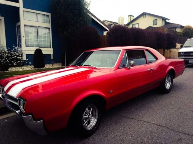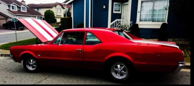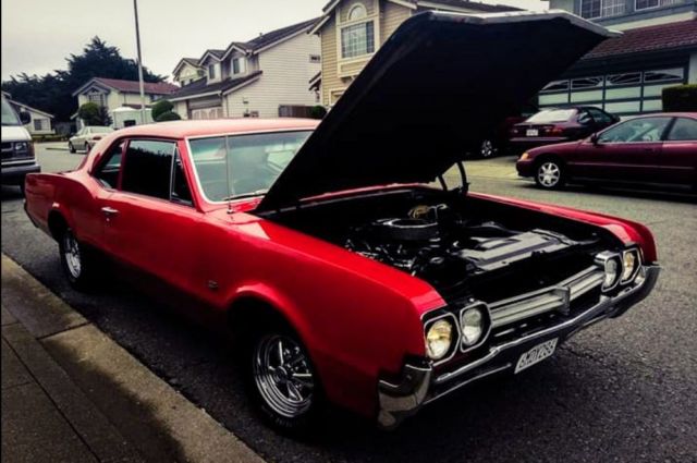1966 Oldsmobile Cutluss up for Auction. 50,000 Miles 330 Motor 8 Cylinder 2 Door Red & White Exterior Clean Red & White Interior Clean Black Carpets Four Brand New Tires Four Brand New Crager Rims New Disc Brake System installed New Rotors New Brakes Front Suspension just done New Bushing & Upper arms Automatic Transmission Smog Exempt Currently Registered till May-2019 Pink Slip In Hand Clean Title This is a Beautiful Car, Red Shiney paint is in excellent condition. I am looking to sale the car as soon as possible. The highest bidder will take this Classic Beauty. The car is in excellent running condition, it is honestly in immaculate condition. The interior and exterior is very clean, the body, is straight, their are no rips or tears on the interior, it is an all around Beautiful car, you must really see it to appreciate it. The car Motor runs excellent, it does not shake whatsoever, it is calm and has a high performance chrome racing motor under the hood. The ride is so smoothe you will just love it. Who ever bids on this car and wins, will definitely be very happy. I am a 54 year old woman, I am the sole owner of the vehicle and the car has bern garage kept and has a clean title. This is my very first time placing an Auction ad on eBay so trust that I am as nervous as you all. Good Luck Everyone! I hope whomever wins the Bid takes care of the car and gives it as much Love as I have. Again, Good Luck Everyone! Serious buyers please Bid only.
