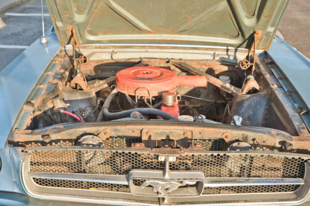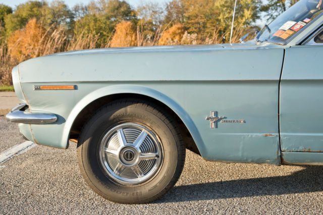 This Mustang has mostly original equipment - lights, radio, dash, seats, rear lights and lens, hubcaps, engine, etc. The odometer reads about 10,328 but I'm assuming it's turned over once. It's a V6 inline 200 Cu. In. 3.3 liter, manual 3 speed. In July of 2017 it was driven from NY to Iowa! During its lifetime it was stored for 40 years in a garage with a tarp over it! (At least that's the story my son was told.) It has new floor boards welded in, new fuel pump, new brake and fuel lines, and new front strut bearings. Problem areas include: the muffler is held in place right now with chicken wire, the rear brake line has a nick in it, the choke and carburetor need work, there is a bolt missing from the passenger seat,and there are some spots on the under-carriage. My son started the restoration process but is serving in the military with no spare time to continue. I'm not trying to hide anything. This car needs a lot of love and a lot of work. If there's a picture you want let me know and I will send it to you. This car is currently being stored in Ames, IA. If you have a question, send it my way and I'll answer it the best I can. A local body man looked at the car and said the lines were straight and that parts were super easy to get for a '65 Mustang.