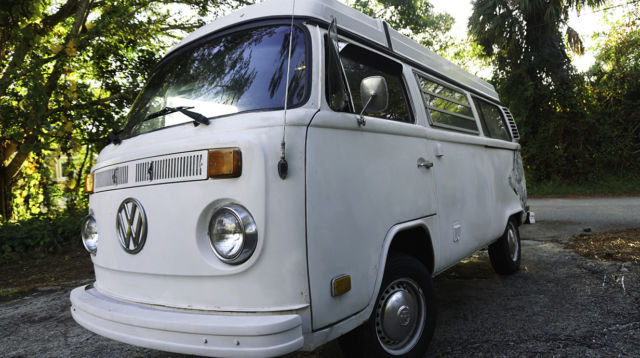 1974 Volkswagen Bus/Vanagon (White/Blue and Green Plaid w/Wood Trim)
