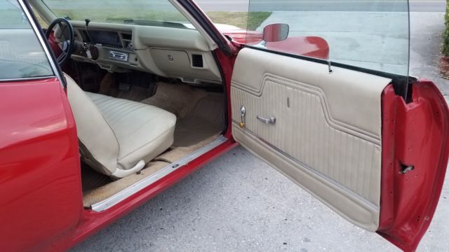 Original numbers matching 350 engine Original ac and most other components Solid car front to back 3 speed automatic transmission 73876 Miles Runs and drives great New master cylinder and brakes New shocks Newer exhaust that sounds like it should! Good tires Engine starts easily everytime with no leaks, smoking , or any other issues Transmission shifts smoothly Windows roll up and down easily Exterior has no dents and is solid Paint looks good but isn't perfect Interior has been well cared for Seats have no rips and are comfortable Will need headliner and small cardboard peice by feet CD player isn't hooked up Original A/C and Heater, both probably need to be serviced I have arm rests for interior doors just need put on Interior door handles need small clips to stay on Underbody is completely solid including frame rails, floor pans, trunk pan, etc.. All Glass is intact with no cracks Installed an aftermarket steering wheel but have the original one Comes with three large boxes of spare parts. One box is full of all new random parts Also comes with Quality Car Cover and brand new weather stripping for doors Clear title Original set of keys Priced thousands under Book value Located indoors at our residence in Polk City Florida $500 deposit due upfront Rest to be paid in cash in person, wire transfer, bank check, or cashiers check within 3 daysNo PayPal for remaing balancesPayment must clear before vehicle is picked upI can arrange shipping if neededAfter purchasing I can store indoors for up to 60 days free if needed I have many more pictures of everything including underbody just ask and I will send asapIf you would like to see it in person before purchasing or send someone to inspect it I can make myself available anytimeAny questions feel free to ask day or nightWorld wide sale 2175088768Thanks!