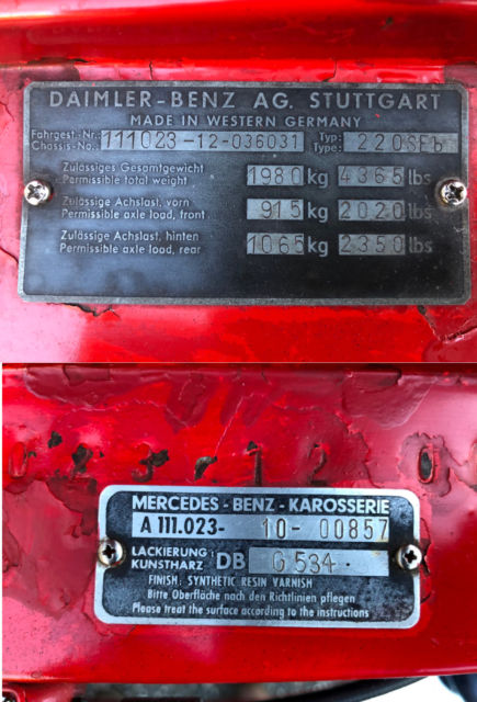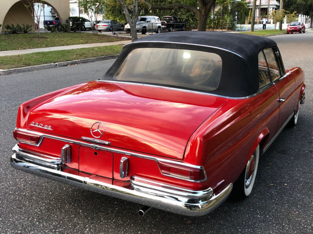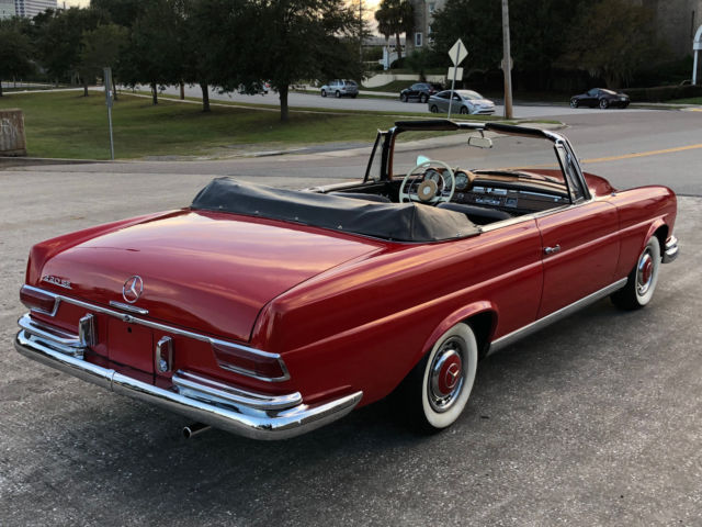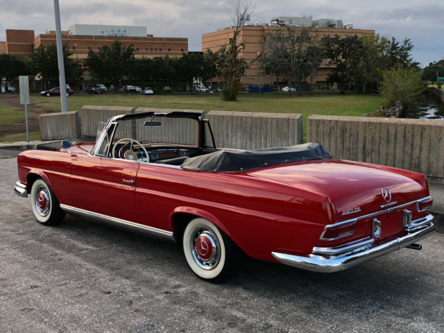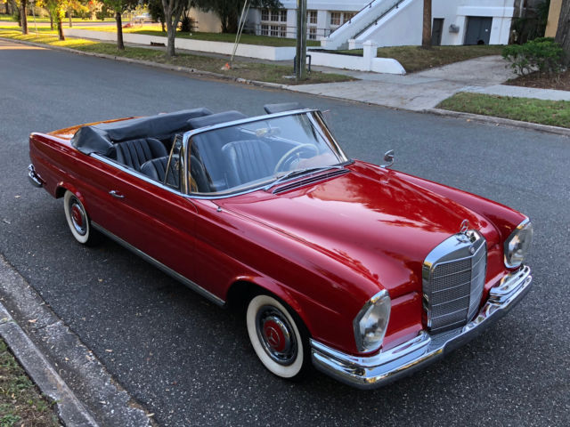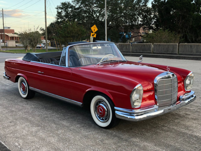1963 Mercedes-Benz 220SEb Cabriolet (W111)VIN # 111.023-12-0360311 owner since 1963!Original and documented 95411 miles.100% original and DATA-Car matching car!Exterior in factory original DB 534 Fire Engine Red (currently featuring the only one and high quality repaint from 2003;, besides couple small, hard to find and barely noticeable touch-ups, the paint is almost flawless).The interior is factory original black leather featured in a form of very rare "bucket' seats (front and back!).Manual windows (an early car!).Factory KUHLMEISTER air-conditioner (works the way it should).Original BECKER Mexico radio (works the way it should).Original KIENZLE clock (the light works, the clock itself is moody). 4-speed AUTOMATIC transmission.The soft-top's headliner is flawless, but the soft-top itself is the original one from 1963 (and therefore old, slightly faded but has absolutely no rips or tears;, it is usable as it is, the rear plastic window is foggy). All original (and flawless) factory SEKURIT windows.All original (and 99,9% flawless) factory chrome bumpers and aluminum trim (highest quality, not a reproduction).Well maintained (95k documented miles, all stamped books/service records).Well preserved (no smoke, no funny odors, driven by a woman since 1963). Never in any type of accident.100% factory original, solid, unchanged in any way and RUST-FREE undercarriage.This is a STUNNING and original example of a car that was well maintained and loved while sporadically driven all the last 55 years.Recently it received a full service and it does not need anything in order to be enjoyed immediately.It starts, runs, drives and performs the way it should.It feels like... Well, driving it with the soft-top down can not be described with words... Exhaust is the original one from the factory (two small patches on it), the car is quiet like a ghost.Tires are 13" brand new Coker white-walls.Even the glove box light works!!!Original books/manuals, all service records, all registrations and insurance cards, two sets of keys. original trunk mat, original tools, jack and original spare tire/wheel are included and come with the car.This STUNNING and TIMELESS classic makes people get up from their seats to look at it!It is even more spectacular for the fact that it it was well maintained/preserved rather that being restored and altered in any way.It is ready to be enjoyed immediately and for many more decades of joy to come.*This vehicle is only 55 years old.Due to the age sold as-is.$1000 deposit due immediately (non-refundable), balance within the next 5 days via bank wire transfer, cashiers check or cash.This is a WORLDWIDE SALE!*904-859-5561