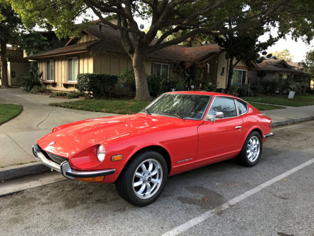 Very original 1971 240Z - All original body panels (never wrecked), original, numbers matching drivetrain (engine, transmission, rearend). Mechanically excellent with engine rebuilt in 2013 by previous owner, engine shows 170PSI compression and <3% leakdown across all six cylinders, transmission and rear end resealed, all fluids drained and flushed in last year. New clutch, clutch and brake hydraulics (brake master, clutch master, and slave cylinder all brand new), new starter (original works and is included). Electrical system worked through with ignition and headlight switches professionally rebuilt. Carburetors replaced with better condition units. (Exact match 4-screw roundtops; originals included) with velocity stacks and ITG aftermarket air cleaners (original air cleaner included). All work performed professionally by Z car specialty shop. All typical rust prone areas are untouched with no rust except for the common two small spots under rear deck lid which have been treated and sealed (but not painted so buyer can see the spots, not hidden.) Just needs to be finished and painted. Car runs on a set of Panasport replica wheels with brand new tires, suspension is largely original except for a few new bushings and will include some uninstalled performance upgrades (T/C kit, nylon rack bushings, Eibach springs). Car was resprayed 2013 with original Monte Carlo Red (code 105) paint, body is straight, interior clean with newer OE seats, fresh carpeting. What it needs: Dashboard work - all gauges except clock work but the dash itself is cracked in a few places but is covered with a dash cover (not installed, just sitting on the dash in case new owner wants to install a new/repro full dash kit), windshield wiper motor is intermittently non-functional (power is there, motor makes noise). Extras (uninstalled) included: Headlight covers, H4 headlights, new heater hose set, ignition upgrades, set of period Centerline style wheels and newer tires, all original parts that were taken off/updated - original air cleaner, original carbs (need rebuilding) A beautiful driver's car with just a little bit of work required to make it perfect. Personal (or proxy) inspection is welcome in San Jose, CA. More details and photos are available by contacting seller.