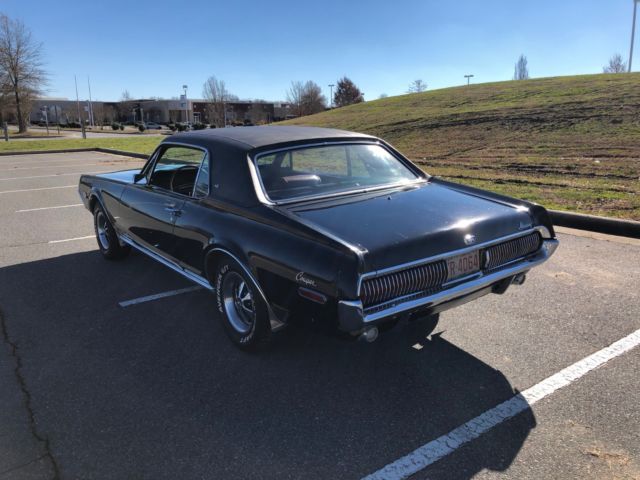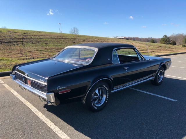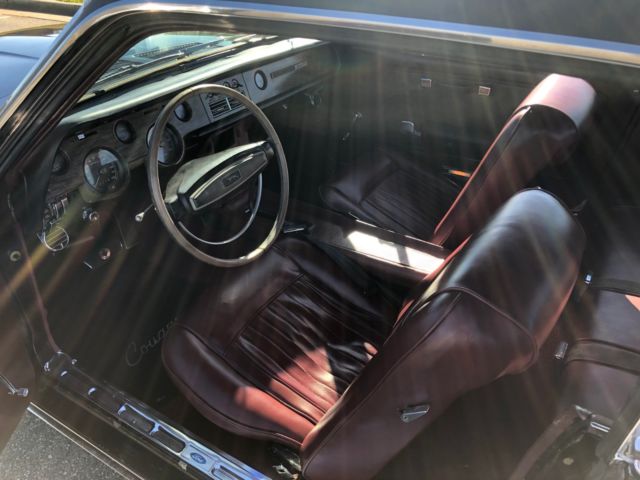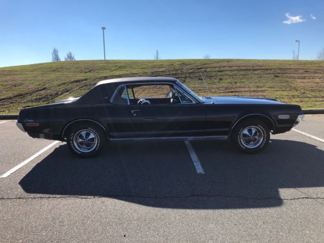 Factory Options include; -XR-7 Equipment Package -302 Super V-8 4V -Select Shift Merc-O-Matic Transmission -Sports Console with Clock (Works and keeps great time) -Whisper-Aire Conditioner (Converted to R134) -AM Radio with Antenna -Oxford Roof Black -Bumper Guards F&R -Power Steering -Power Disc Brakes -Tinted Glass -Style Steel Wheels Records Indicate Extensive Maintenance within the last 10,000 miles including, -Transmission Overhaul with New Torque Converter -All Engine Seals and Gaskets replaced including Freeze Plugs.  At this time intake manifold was replaced with Edelbrock Performer and Edelbrock Carburetor.  Distributor upgraded with Pertronix Ignitor, MSD Cap, Rotor, Wires and Coil. -New Belts and Hoses -New Battery, Positive, Negative, Starter Cables replaced with Factory Style replacements.  Also new Battery Tray and Hold Down. -Aluminum Radiator -Power Steering Pump and Slave Cylinder rebuilt -Front and Rear Brakes including; Calipers, Wheel Cylinders, Brake Hoses, Brake Pads, brake Shoes, Master Cylinder and Power Brake Booster. -New Tires -New Factory Style 2 1/4" Dual Exhaust, H-Pipe, and Factory Style Hanger Kit. -Digital Sequential Turn Signal Box -Heater Core -Carpet, Sill Plates, and Kick Panels  Ready to take out, drive and have some fun The car is not rusted out like most Cougars of this age appears to have been rust proofed either when new or early in its life.  Roof is solid as the car does appear to have been garage kept most of its life.  Frame rails, Torque Boxes, Floor Pans, and Shock Towers have zero rust other than minor surface rust from paint chips.  Trunk Floor and Drop Offs are solid.  There are some minor bubbles in the fronts of the doors and the fronts of the quarters (see photos).  This is one of the most solid un-restored Cougars I have run into in a long time.  Paint is probably a 6-7 interior 7-8.  Additional undercarriage photos available upon request. Car runs and drives great, would not hesitate to drive it anywhere. Please make sure you have the means to purchase prior to bidding. Car is available for inspection prior to auction close.$500.00 deposit due within 24 hours of auction close.Please feel free to call with questions 980-621-8792.  Car is available for sale locally.