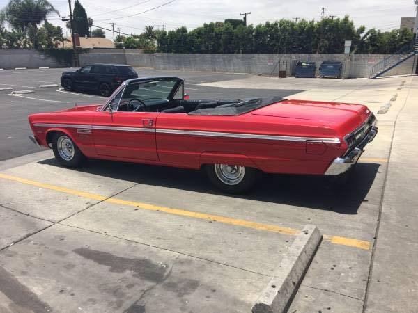 1965 Sport Fury Convertible with mint condition convertible top and electric motor. Clean black interior with an updated sound system. All gauges and interior dash components function perfectly. Fresh shocks, Tires, New Brake System front and rear with new hydro boost brake system. New carb and tune up. All upgraded torsion bars and front end bushings. Power Steering pump is recently serviced and rebuilt. New radiator. New ignition system. Transmission was recently overhauled and serviced. New exhaust. New HydroBoost Brake System. The 1965 Plymouth Sport Fury, the brand's sportiest full-size offering. Exclusive to the Sport Fury, though optional on other models, were rear fender skirts. This Sport Fury came with V-8 power, the 4 barrel Commando 383 with a factory rated 330 (highly underrated number) HP. Plymouth noted that the Sport Fury convertible had an improved folding mechanism that worked silently and quickly at the touch of a switch. A brand new snap-on flexible boot covers the top when lowered. When up, the top looks slim and elegant, a snazzy complement to the square-cut lines of the body. The Sport Fury convertible was chosen as the pace car for the 49th annual Indianapolis 500 race in 1965, the first time that Plymouth had been so honored, a fitting tribute to the all-new 1965 full-size Plymouth line. Only 6,272 were built, plus 38,348 hardtops, making the Sport Furys the rarest full-size series for 1965. Make a reasonable offer. Car is currently in Los Angeles Garage.