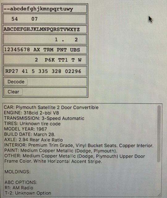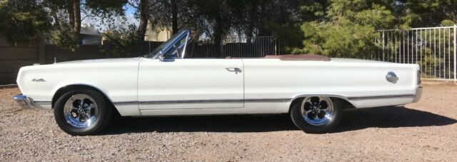 NO RUST THAT I CAN SEE, WHAT I THINK ARE ORIGINAL BODY PANELS WITH NICE ALIGNMENT, RUNS AND DRIVES GREAT. ORIGINALLY A 318ci CAR UPGRADED WITH A PERFORMANCE 440ci ATTACHED TO A 727 AUTOMATIC TRANS CONNECTED TO A 323 8 3/4" POSI REAR END. I ALSO HAVE THE ORIGINAL 318 SHORT BLOCK THAT'S BEEN REBUILT WITH .30 OVER PISTONS, NEEDS CLEANING UP BUT INCLUDED WITH THE CAR. THIS CAR IS 1 OF 1370 CONVERTIBLES BUILT IN 67..THESE CARS ARE BECOMING AS HARD TO FIND AS HENS TEETH! HAVE AN OWNERS MANUAL, NO BUILD SHEET THAT I'M AWARE OF AND NO CERTICARD. OLDER RESTORATION WITH PREMIUM INTERIOR PKG, NICE PAINT, REAL NICE CHROME AND TRIM, AM RADIO (works), ALL LIGHTS AND SIGNALS WORK, INTERIOR LIGHTS WORK, KEYSTONE MAGS WITH BF GOODRICH 245/60R15 TIRES ALL AROUND, FLOWMASTER EXHAUST, SPARE TIRE AND JACK IN THE TRUNK. ORIGINAL UNDERCOATING STILL THERE, TOP IS FULLY OPERATIONAL AND IN GOOD CONDITION I ALSO HAVE A BRAND NEW WHITE TOP IN THE BOX THAT WILL BE INCLUDED WITH THE CAR, NICE CLEAN DRIVER QUALITY CAR YOU CAN DRIVE TO ANY AFTERNOON CAR SHOW.FENDER TAG IS DECODED (see photos). THE ODOMETER READS 27,393 SO FOR ARGUMENTS SAKE I'LL SAY IT'S 127,393, EITHER WAY STILL PRETTY LOW MILES FOR A 52 YEAR OLD CAR. ASK FOR PHOTOS OF THE 318, THEY ONLY GIVE ME ROOM FOR 24 PICS. THANKS FOR LOOKING. EMAIL ME WITH QUESTIONS OR CONTACT ME 7025137885. MEANWHILE, CHECK OUT MY FEEDBACK AND LET'S MAKE A DEAL, ALL REASONABLE OFFERS WILL BE CONSIDERED. THANKS FOR LOOKING! A $500.00 NON-REFUNDABLE DEPOSIT IS REQUIRED. I'VE DESCRIBED THIS CAR TO THE BEST OF MY ABILITY AND IS SOLD AS IS WHERE IS WITH NO WARRANTY EXPRESSED OR IMPLIED, BUYER PAYS AND IS RESPONSIBLE FOR TRANSPORT. I RESERVE THE RIGHT TO END THIS AUCTION AT ANYTIME. ALL SALES ARE FINAL.