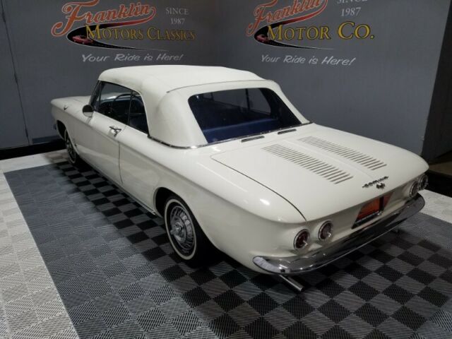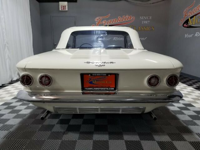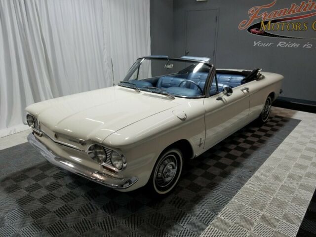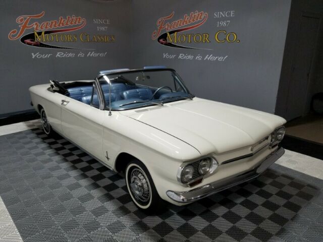 Franklin Motors is proud to present this impeccable 1963 Chevrolet Corvair. With a clean record, flawless body and extensive paperwork behind it, it's a museum display ready example of an infamous American Classic! This Corvair was diligently taken care of in climate-controlled garages for its entire life. Itâs never seen rain! The previous owner has kept a small booklet detailing how many miles he drove and how many gallons of gas he used for every one of his trips. You will also find an extensive backlog of vehicle registrations under the ownerâs name. Ranging from 1972 all the way until 2019. The previous owner registered it in California before moving the registration to Indiana. All paperwork from the dealership is still with the vehicle. They include the Ownerâs manual, Chevrolet Owner Protection Plan booklet, the 1963 model year showcase of all the vehicle at sale in 1963, the operation and care of the folding top manual, and stickers! The Chevrolet Corvair still has it's 4-wheel independent suspension and its trans-axle in the rear. With its light body, rear mounted engine and of course the aforementioned 4-wheel independent suspension makes it an absolute blast to drive! Put down it's pristine condition white top and let the air rush by you while you tear up the road and show everyone that American cars can do so much more than just race in a straight line. Its flat-six boxer piston engine is an absolute gem! A complete rarity and almost completely nonsensical choice for GM at the time! Of course, you can't mention the Chevrolet Corvair without mentioning Ralph Nader and his book Unsafe at Any Speed. His book became the one of the major reasons the Chevrolet Corvair is still remembered and talked about to this day. So, what are you waiting for? It'll be years before another perfect Corvair shows up again so visit our location at 3819 Dickerson Pike, Nashville, TN 37207, we are more than happy to let you check it out.