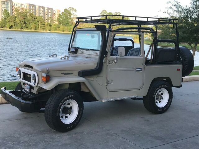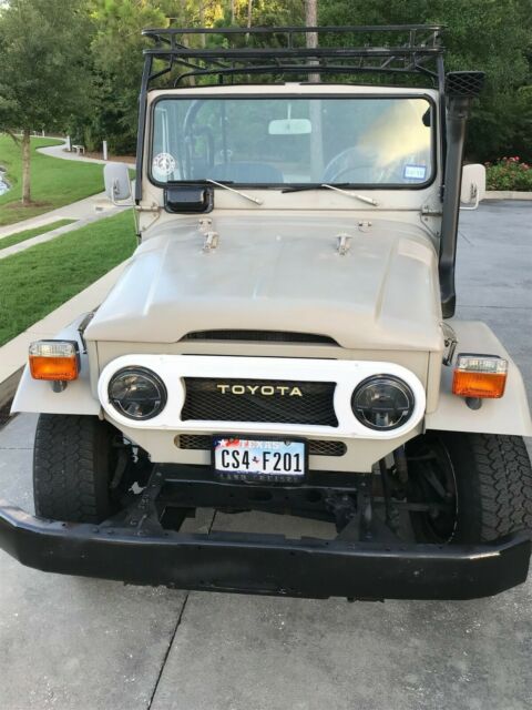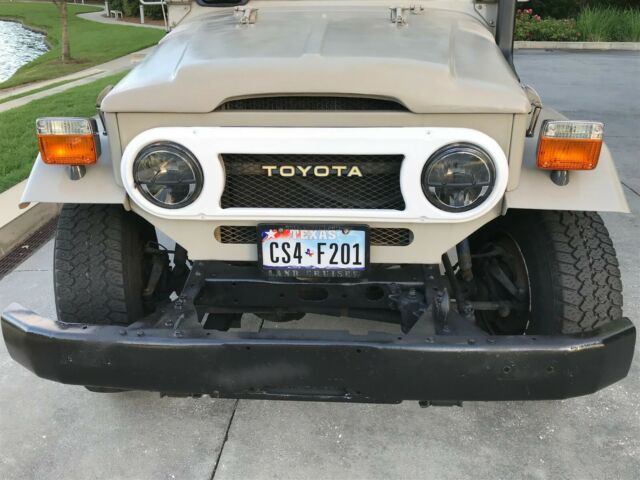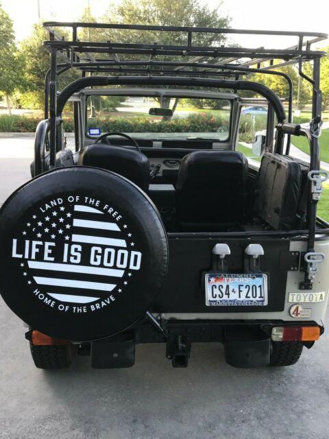 4.2L inline 6-cyl. 4-speed transmission. 3-gear transfer case. Disc brakes in the front. NO AC. NO Power Steering. Paint is Toyota Dune Beige code 416. Aqualu Industries Aluminum body, cowl and fenders ($8600 current list price), The suspension on this vehicle is original/stock. No alteration except new shocks and steering stabilizer. Wheels are American Racing powder coated white. Electrical rewired with Painless harness and fuse box. gauges are working (with the exception of the oil gauge and odometer), Odometer measurement in Kilometers and is not correct.Engine: accelerator pedal linkage to carburetor with cable, runs well without issues.Black Tiger Soft Top with frame included (showing age related discoloring, Tan Bikini Top included.7" Round LED Headlights, new taillights and turn signals. Safari Snorkel, SOR Expedition Roof Rack, Tuffy Locking Center ConsoleThis vehicle is sold "As Is", known issues include: Wipers not working (replaced motor), heater fan not working, parking brake not working, extensive frame rust with some holes (see pictures). Spare tire is damaged with small gouge in side.Terms:I require $1000 down within 24 hours of the auction end. Once I receive the deposit I will overnight the clean, Texas title to you. Once you receive the title you have 7 days to pay the balance. PayPay for the deposit only. Wire transfer or Cashiers Check for the balance. Pick up in person or arrange shipping. All questions to Brian @ 281-352-4394.
