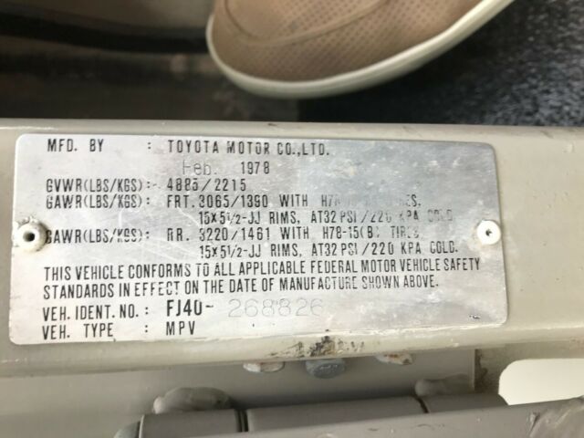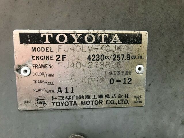 | Vehicle Title: | Clear | Trim: | FJ40 Original I6 |