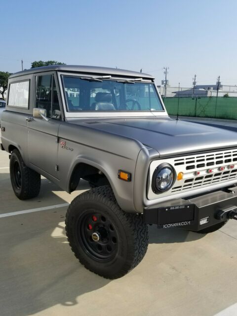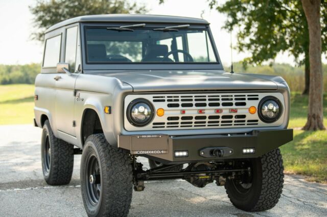 If you want an ICON Bronco, and don't want to wait 2-3 years to have one custom built, you can take this Coyote Bronco home right away. Fully re-engineered by the leaders in Bronco restomods, ICON 4x4. It is in excellent condition with additional upgrades and service provided by TLC/ICON in March of 2019. Vehicle Description:1974 Ford Bronco (ICON BR #20), 2 owner vehicle. Frame up â body off custom design build. Originally built and delivered in 2015 with additional upgrades performed by ICON in early 2019. Finished in Matte-charcoal gray with a Ford Coyote 5.0L V8 powerplant married to a Ford 4 speed automatic transmission,with overdrive. Comes with both a color-matched removable hard top, as well as the black multi-layer, insulated canvas soft top. Includes upgraded custom Bison Hide interior, alcantara head liner, heated seats, backup camera and current generation brakes + stereo. This Bronco was delivered after a fresh service and complete inspection by the team at ICON.Details:Year:1974Make: FordModel: BroncoVIN: U15GLU10404Features: Custom Stereo, Back-Up CameraEngine: 412HP Coyote V8Exterior Color: Charcoal Grey, Matte FinishInterior Color: BlackExterior: Custom matte paint, Matching paint hard top, Insulated soft top, Un-cut stock steel body, Side steps, Custom bumpers, Warn winch and recovery gear set, Custom CNC stainless door handles and rear view mirrors, LED headlights, LED front and rear aux lights.Interior: Custom high back seats with 3 stage carbon fiber seat heaters, upgraded Bison Hide upholstery, 4-point Roll Cage, Custom Chilewich floormats, tilt column, power door locks, power windows with analog controls, Dakota Digital instrument cluster, vintage A/C, ICON sport pedals. Brakes: All Disc, Brembo 6 piston front - 4 piston rear calipers, New Lines (2019), New Master Cylinder (2019)Steering: Modified Power Steering, Modified Steering ColumnExhaust: Borla stainless steel mandrel bent exhaust system with high flow stainless muffler Suspension: Fox Racing Four Link with 12â³ coil-over shocksDrive Train: Atlas2 Transfer case, providing part-time, shift on the fly 4 wheel drive Transmission: Automatic, 4 speed w/overdrive, Ford 4R70WTires: 285/65R18 BFG All TerrainsWheels: ICON Aluminum WheelsAxles: Dynatrac Dana 44 in the front and Dynatrac Dana 60 in the rear, with ARB Air LockersPrice:$225,000