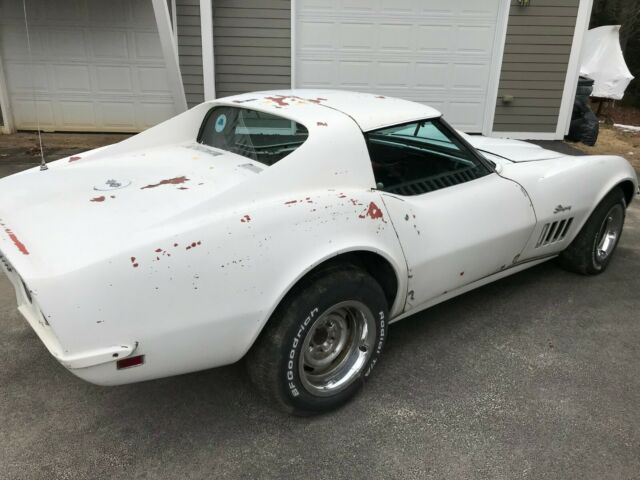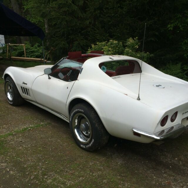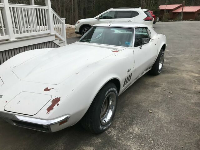 The value of this car is that it has all options, low mileage, and a rebuilt motor( motor and engine bay need detailing needed from sitting)AC,Power steering, tilt telescoping wheel .For all of you corvette purist and those who don't know what a true matching numbers means but ask anyway-It is all matching numbers. I bought it due to all the options and original condition for restoration. Windshield frame is in good shape and retains original paint. The frame is in good shape but needs a good cleaning and chassis paint. It has all the options , AC, Tilt Telescoping, Power steering, power windows. It is a real 350/350 HP and is a 4 speed car. I was starting to disassemble the car for restoration. Most of the red interior is in nice condition, will definitely need carpet. The oil was changed and engine was started last year and it ran well. I have put fogging oil in the engine to protect it. Gas tank and lines etc have been removed for cleaning out old fuel. All systems operated such as the vacuum headlight doors wiper door etc. I put in a new clutch /pressure plate and throw out bearing. Rear valance, bumpers , gas tank were removed to start restoration and I have them with the car. I was assembling all the paperwork and assembly manual and found the engine was rebuilt in 2004 prior to storage. I have full documentation on that professional full rebuild and mileage from a well know corvette and hot rod shop. I also have previous owners registration for States that require it. I have all these new parts below that are included with the car. Calipers Rotors Brake Pads/emergency shoes Brake lines/cables fuel lines complete exhaust system Original radiator is rebuilt like new in the box AC Pump and lines Maine does not issue titles for cars this old so it will be sold with a bill of sale. I do have previous owners registration. Please bid with confidence. I am an honest seller.