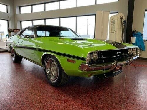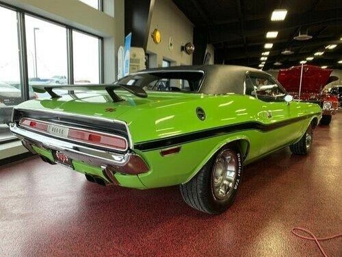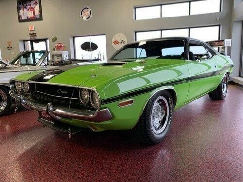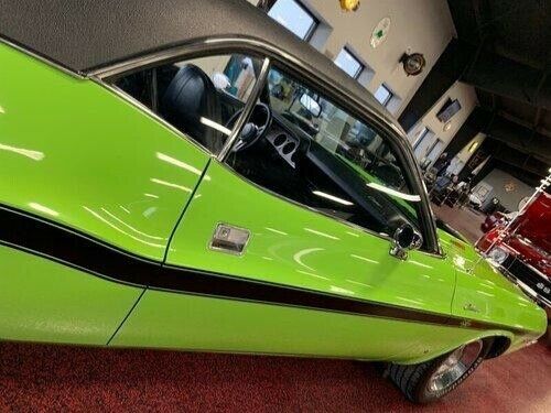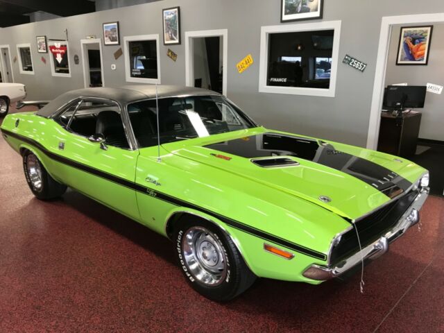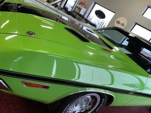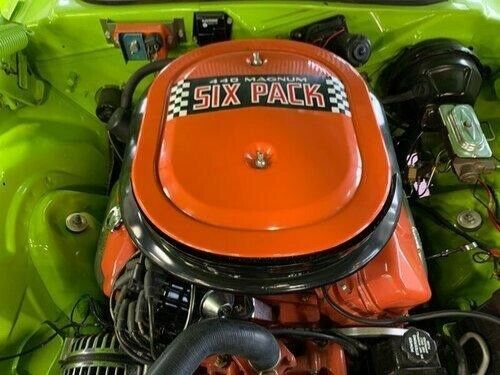 Mopar or No Car. As you can see in the photos, this Challenger has smooth straight lines. The panel gaps line up great over this straight body. The panels appear to be the original metal. The Sublime Green is the paint Correct Code and immaculate at any angle you want to take in. This is what everyone wishes their restoration looked like. You have to give yourself an extra 30 minutes when driving the vehicle as everyone wants a photo and wants to talk about the car. The glass is clear and easy to see through. The bumpers and grill are also in great shape. The bottom of the Challenger is just as clean as the top. The pans are solid and the frame has been media blasted and color matched. The interior looks new from the carpet and seats all the way up to the headliner. Under the hood rests the envious 440 six pack built with performance parts by the nationally known builder Bob Mazzolini. This car has an estimate of 535 hp at the rear wheels! Engine Specs: Holley 550 Center Carb - Front and Rear Carbs 350 (lists #4365-1 3488 H14) On top (#d1565 6R 3406B) - Edelbrock Chrysler Sixpack Dual Plane intake manifold (#24751) Edelbrock Performer RPM 440 heads 210cc intake ports, 70cc exhaust ports. Cook Cam Extreme Energy 274 Cam (hydraulic flat tapped), three bolt cam sprocket Crane Cams Gold Racing Rockers (64-1.50L/B-10) Stock bore forged pistons. Speed Pro moly rings, 10.1 Compression. TorqueFlite transmission that shifts smooth. The rear has a solid Dana. They are linked with a brand new driveshaft. The exhaust has an incredible distinct sound with Dougs headers and a custom exhaust all the way through to the factory chrome tips. This Challenger sounds Amazing at idle and only gets better and you get into the throttle! The whole brake assembly is just as the factory intended with power discs up front. The fender tag break down includes: 100135; sequence number E44: 318 CID 2 Barrel v8 230 hp; D31A904 3 speed auto trans, FJ5: Sublime Green Color; H6X: Trim High, Vinyl bucket seats, black white 000: full door panels; 818 build date: August 18th 039304: Order number F15 Sublime top color C16: console w/wood grain panel C35: bucket seats G32: OS RH Manual Racing Mirror G34: OS LH remote racing mirror M21: roof drip rail moldings: R11: radio solid state AM (2 watts) Over $55,000 has been tastefully put into this build. Thanks for your interest.
