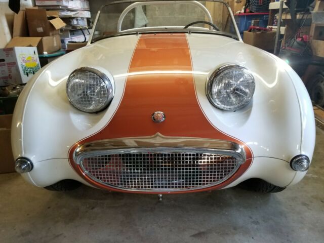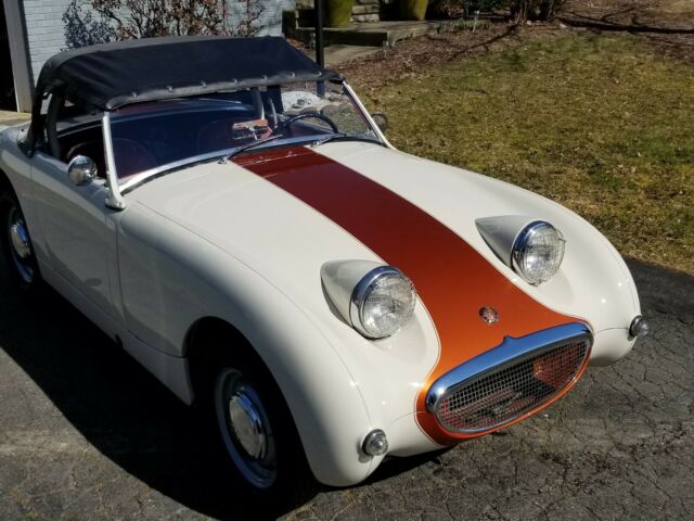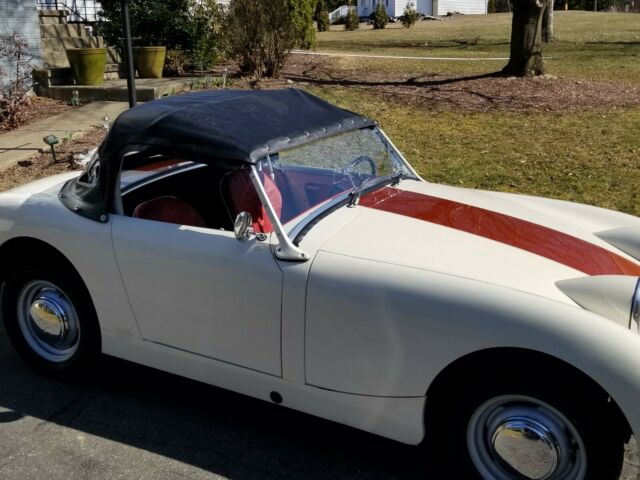 Incredible 1958 Austin Healey Bugeye Sprite.....NEVER ANY ACCIDENTSVin is AN5L881 making it one of the earliest Bugeyes still in existence..Note windshield frame narrower with baby tenex all along top front.Cars body and underside was meticulously restored many years ago,and much attention to detail was given and then sat for over 35 yearsRecent refreshment includes fully rebuilt 1275cc MG Midget engine along with rib cage 4 speed transmission.Engine was rebuilt with new pistons 0.60 over, rings,bearings,cylinder head rebuilt. ( COMPLETE ORIGINAL DRIVE TRAIN WITH SMOOTH CASE TRANS IS INCLUDED TO KEEP IT A FUTURE ALL NUMBERS MATCHING VEHICLE ).Car also comes equipped with rebuilt Judson supercharger with Holley carb...( please note engine is NOT high compression )....Mileage of 21000 is believed genuine !!!New Exhaust throughout with wrapped header.This car is a snotty little bugger.Sure is a lot quicker than most.Underneath you would eat your dinner off.All rebuilt suspension,springs,seals,bushings.New performance tyres..Restored and powder coated rims in like new cond...All new brakes,cylinders,shoes and complete copper brakes lines...Rebuilt gas tank..New Clutch.All new interior,new top quality wool carpet.New Chrome Grille.New cloth braided wiring harness complete front to rearNew rear chrome,new lights...New PL700 tripod headlights.New convertible top....Has Tonneau cover,spare wheel and king dick jack.New Red seat belts supplied.New correct fresh air intake hose (NOT A DRIER VENT HOSE ! )Clear title/NY trans Reg in my name..I am sure I have missed something,so please ask questions and I DO prefer to speak one on one with serious buyers on the phone.OVERSEAS BUYERS ARE WELCOME