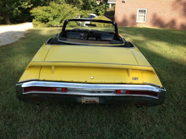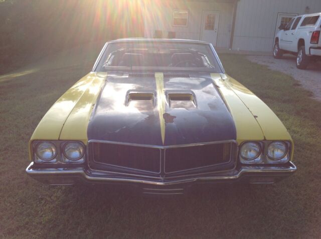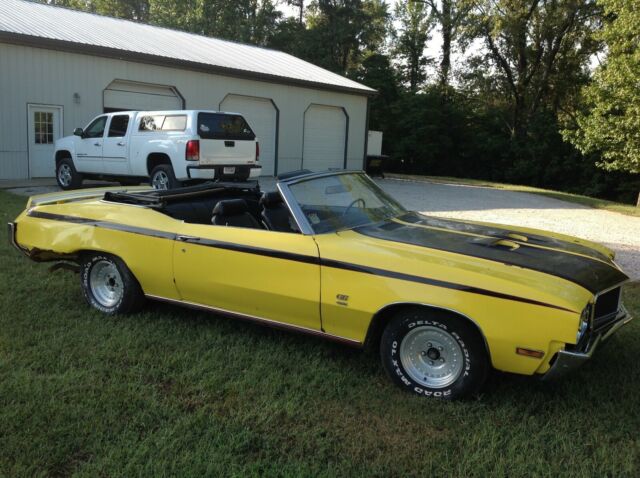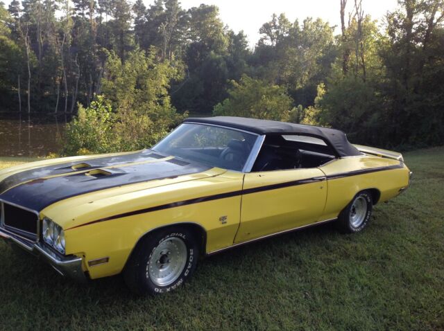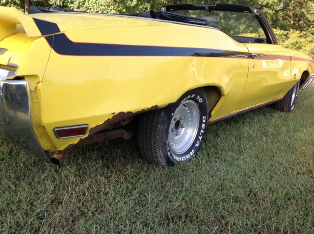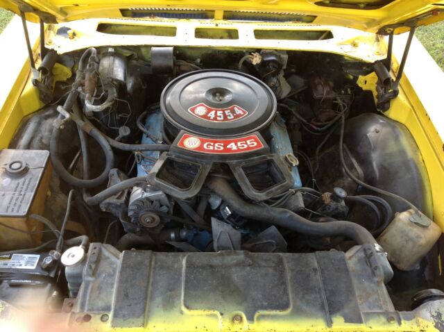 RELISTING DUE TO BUYER PLAYING GAMES Originally sherwood Green Car will run but carb is leaking fuel Motor in car is a 430 but comes with a 1970 gs 455 stamped code SR for rebuild and comes with factory wheels and some misc parts in trunkBucket seats , console floor shift , factory tach dash , power top.....works good , original 400 transSolid frame , solid floor....floor has 1 patch under rear seatSolid top frame , solid under hood cowl wheel wells etc.No carpet , driver seat no cushion but have new cushionRH quarter has damage and trunk pan needs replaced.Car has some rust spots , paint bubbles etc.This would be a good car to do a little work on and drive or restore.Selling as a project to restore , will need to be trailered , not road worthy.$500 non refundable deposit via pay pal within 24 hours end of auction.Balance due within 7 days of auction end , cash , cashier bank check If not paid full within 7 days you will lose your deposit.Check must clear before car leaves my property.Car must be picked up within 2 weeks , will work with buyer , can help load on trailer.Buyer is responsible for all transportation costs and arrangements Email with any question you may have.....sold as is.....no warranty