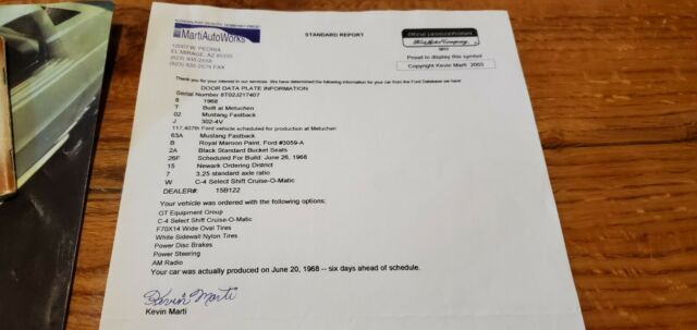89,000 actual miles.Factory Burgundy and black interior. This is a Real GT car. Rebuilt 302 motor and rebuilt auto trans. Car runs extremely fast. See Video below. Sounds great. ** There will be a 2 week title delay on this car, ( because of Covid ) I will sell the car and take payment, and I will store car until title arrives. I will work with you **. Or i can ship car and send title when it arrives. We can discuss. 20 years on ebay, no games played.Driving video 1 - https://www.youtube.com/watch?v=BqLNmOx1a5o&feature=youtu.beDriving video 2 - https://www.youtube.com/watch?v=23f7sHNxxOE&feature=youtu.beVery nice older paint with a few imperfections and touch ups. Very nice chrome. Very nice interior with slight fading in carpet on center hump.Very clean motor compartment.Comes with Marti Report and original owners manual with originals owners name. Original dealer brochure. Many receipts for mechanical rebuilds.All 3 vin locations are correct and in place and match the title.TERMS :1. $500 DEPOSIT THROUGH PAYPAL IMMEDIATELY AFTER THE AUCTION ENDS - NON REFUNDABLE - NO PAYPAL FOR FINAL PAYMENT2. FINAL PAYMENT IN 3 DAYS - MONEY WIRE - CASH IN PERSON - OR CERTIFIED FUNDS ONLY . ALL FUNDS TO BE CLEAR BEFORE VEHICLE LEAVES.3. CAR IS LOCATED IN MARYLAND ZIP CODE 216404. INTERNATIONAL BIDDERS ARE WELCOMED5. I CAN ASSIST IN SETTING UP SHIPPING AT YOUR EXPENSE IF NEEDED. I WILL ASSIST IN LOADING OR ANYWAY NEEDED TO MAKE THIS A SMOOTH PROCESS6. I HAVE BEEN ON EBAY FOR 20 YEARS AND HAVE EXCELLENT FEEDBACK7. THIS ITEM IS SOLD AS IS, WHERE IS. - THANK YOU.