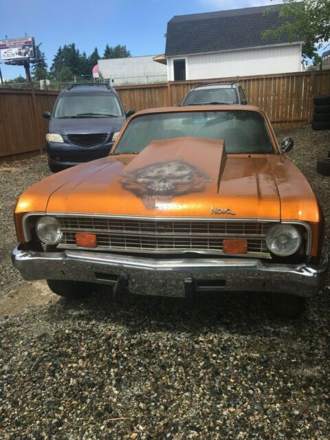 THIS CLASSIC CHEVY COMES SET UP WITH POWER BRAKES AND COMPLETE REAR END. THE RADIATOR AND TRIM PIECES ARE IN THE CAR. `NO MOTOR OR TRANNY~MISSING BACK SEAT BUT MOST EVERYTHING ELSE IS THERE. THE CAR IS MOSTLY COMPLETE AND IS THE "PERFECT PROJECT" A GREAT FATHER SON PROJECT MAKE IT AN SS CAR OR A YENKO CLONE..CHOOSE YOUR POWER PLANT ITS READY TO BE FINISHED.. THIS CAR HAS BEEN STORED FOR THE PAST 10 YEARS SO ITS PRETTY CLEAN AND STRAIGHT WITH MINIMAL RUST. THERE IS SOME RUST BUT NOTHING BAD. THE DATA PLATE COMES WITH CAR AND IS A FACTORY 350 V8 CAR WITH AN AUTOMATIC AND IS A NOVA 2 DOOR CUSTOM . WILL NEED TO BE TOWED. THIS IS SELLING AS A PROJECT CAR IS AS-IS WHERE IS CONDITION SO PLEASE INSPECT THE CAR AT YOUR CONVENIENCE AND WE HONOR 3RD PARTY INSPECTIONS AT BIDDERS EXPENSE. NO FREE WORK PROMISED WE DO OFFER FREE STORAGE FOR 30 DAYS FOR OUT OF STATE/COUNTRY BUYERS PLEASE ASK IF YOU HAVE ANY QUESTIONS AND WE DO HAVE MANY PICTURES OF THIS CAR ALL AROUND. HAS A BIG BLOCK HOOD "FUNCTIONAL" WHAT YOU SEE IS WHAT YOU GET "ASK QUESTIONS..EXERCISE DUE DILIGENCE~$500. PAYPAL DEPOSIT NON REFUNDABLE DUS UPON PURCHASE AND BALANCE DUE IN 5 DAYS NO EXCEPTIONS. CALL ME AT 253-312-9594 IF ANY QUESTIONS. THANK YOU. PLEASE CONSIDER THE STATED MILEAGE AS OVER ITS MECHANICAL LIMITS OR EXEMPT/UNKNOWN DUE TO AGE (46 YEARS OLD)