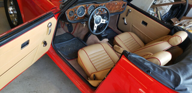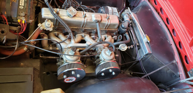 2 year old restoration everything completely renewed from the ground up bespoke leather interior complete fat mat sound & heat proofed new Tires , powder coated rims, ss wheel ring, Taken to bare metal and new paint electric fan aluminum radiator led dash lights walnut burl dash new up grade brakes new suspension front &back new steering Headlight relay way way too many things to list all Hella headlights with power relay Carb heat shield and wrapped header for cooler fuel electric fuel pump and regulator LED interior lights upon door open and switch all new crash pads and console new brake master and clutch master and slave polished SS exhaust system new carpet and seat pads trunk heat and sound padded with new interior SS braided brake lines new rubber seals on entire car new windshield and all seals new door and window cranks and pulls beefed up frame supports installednew gas tank and sending unit