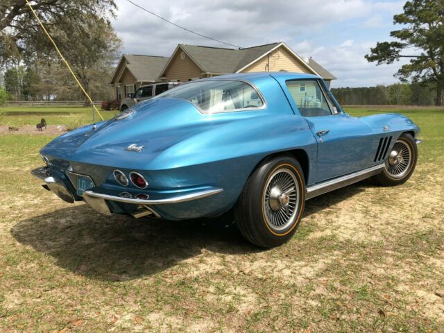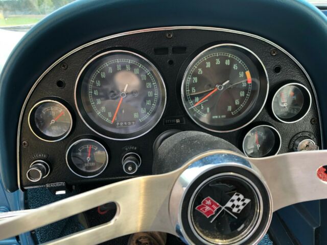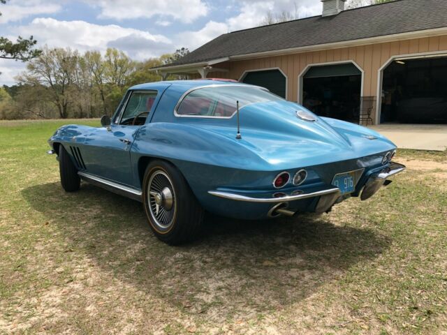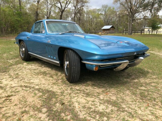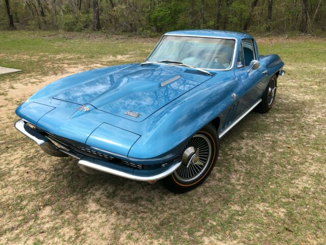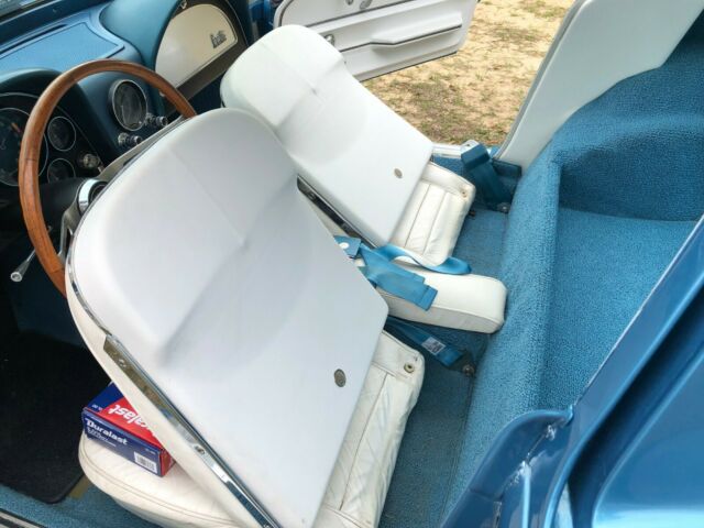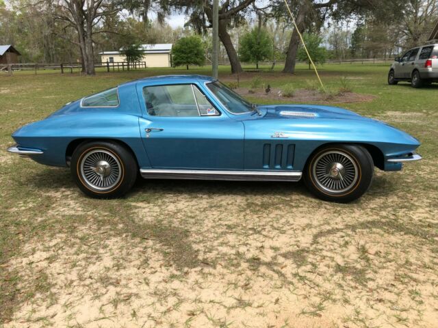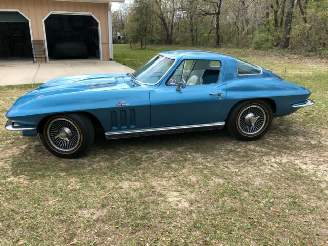 I'm pleased to present my 1966 big block corvette. I haveowned this car 17 + years and have lovingly maintained it to a high standard.I'm presenting this car as a solid # 2 condition simply because I drive it occasionallyto keep it in good running order. Unfortunately, I nolonger have the time for two Corvettes that are driven only occasionally on sunny days, thus the lower than normal Buy It Now price.The car has a Nassau blue exterior and a white + bluevinyl interior with white seats, head liner, and door panels and blue carpet, console, anddash. Original big block car but not original motor/NOM 427ci engine with 4 speed manualtransmission. Features include knockoff wheels, gold line tires, originalAM/FM radio, and teakwood steering wheel. Originally assembled November 1, 1965per NCRS Shipping Data Report, this car is in excellent condition and has had extensiverestoration work, as an unsuspecting owner (me) poured a bunch of money into itthinking NCRS would not change their rules and eliminate judging of any carwithout the original trim tag. The replacement trim tag is faithful to theoriginal and shows the correct codes for when the car was new. The car wasjudged before this rule change and was judged at 83.2 points, high Third Flightand only 1.2 points shy of Second Flight. Restoration was continued but thenthe rule change hit. If judged today it would be mid- to high Second Flight. Thiscar's paint is good-very good, with a great shine and a couple nicks around the wheel wells. Chrome bumpers show a very goodfinish, and taillights, weather-stripping, and knockoff wheels and spinners are all very good-excellent. Goodyear gold line tires show an averageof 18/32nds tread depth remaining. The interior â seats, door panels, sillplates, carpet, seatbelts, gauges, glovebox lid, center console, and dash pods âshows good-excellent. The replaced OEM white door panels are included. OriginalAM/FM radio is in place and still works. The NOM 427ci engine shows a castingnumber from early 1967 model year with correct air cleaner, valve covers, andignition shielding. Exhaust system has less than 500 miles since installation.For an extra $500 I will include complete side exhaust including rear, solidfascia in the correct color. Extensive records and invoices dating back to 2002-2003are included. This car has recently been fully serviced, and all instrumentgauges, lights, turn signals, brakes, engine, transmission and rear-end are in verygood-excellent operating condition.If you are in the market for a collectible Corvette thatyou will absolutely love driving and showing, look no further. C2 Corvettes arebecoming a scarce item in the collector car world and owning a gem like this isdefinitely something to enjoy.