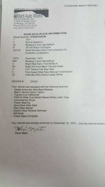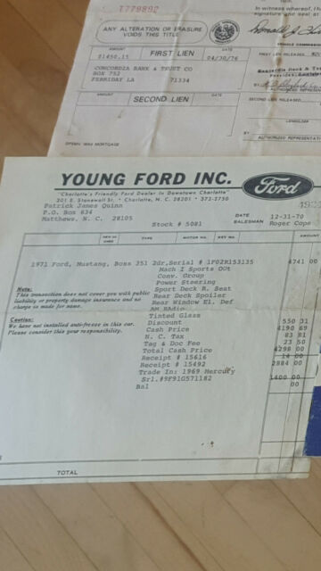 @import url(https://fonts.googleapis.com/css?family=Roboto);About this vehicleThis 1971 Ford Mustang Boss 351 is 1 of 33 Bright red cars built. Rare nicely optioned car 1 of 1 with these options.Loaded with factory documents, how many cars around with factory docs not many I bet.Southern born rust free sheet metal car southern born and raised look at Marti.Seller's NotesNice mild restoration, it didn't need rotisserie because it was a great car to begin with.Matching numbers but not the carb.Youtube video link https://youtu.be/GjGvB_tN9wwRebuilt motor,new front suspension,nice paint,original interior still nice but there is a small seam separation on passenger seat. Original interior so i left it alone.New clutch, new flywheel,new throw out bearing and new pilot bushing.The original 9 inch rear end is freshly rebuilt all new bearings,gaskets and brakes.New brake booster and master cylinder.Scott Drake gas shocks on all 4 corners.New Scott Drake front coil springs.New Scott Drake rear leaf springs.New 2.5 exhaust with Patriot long tube 1.750 headers with flow master mufflers.New Cal Trac traction bars.Original matching number 4 bolt main block. Look at casting date and 4 bolt main caps.Correct one year only Boss 351 heads with screw in studs.Correct RUG AV 1 Transmission. Now running a vintage Edelbrock Torker intake manifold and a new 750 quick fuel double pumper. Cam is a .605 intake .605 exhaust .248 .248 @ .05 (294S) solid mechanical Competition Cams.I am selling a few of my cars to purchase a business take a look at my other cars too. Parts that go with the sale are original exhaust manifolds, intake manifold. This car is really quick and drives great. Any reasonable offer might be considered. Sale is final the car is sold as is no warranty or returns. Come and drive it or have it inspected you will not be disappointed.ExteriorLoaded with all original docs very hard to find these days.InteriorEngineDeposits are nonrefundable.Created on the eBay Motors app