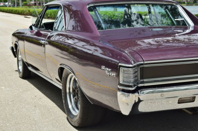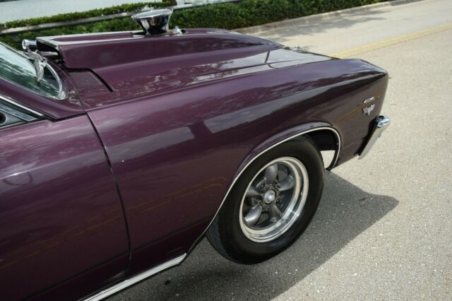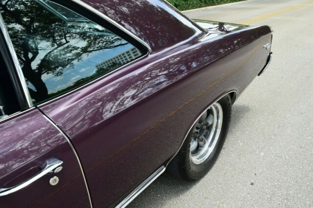 Build consists of the followingDART BIG M BLOCK TALL DECK 10.200 IN Deck HeightUltra Dyne Cam part # 5020000Duration AAT .050 intake 260 Exhaust 268Lobe Lift Intake 4033 exhaust Separation 108Timing events .050 intake DART RPO 1 ALUMINUM Heads ---10.5 to 1 compression / PUMP GAS --- STREET CAR ---Jesel Series SS Shaft rockersPro filer sniper big block chevy single plane intake manifoldJesel 1 piece upper pulley belt drive system MSD ignition pro billet front drive distributorMSD pro billet oil pump driveMSD crank trigger for big blockCurrie enterprises FAB and BRACED 9" rear end housingCurrie center section with posi and 3.89 gearsGear venders overdrive unit Line lock unit on shifter. Full Hotchkis suspension and sway bars Rack and pinion up graded steering system Nascar style American racing TORQUE THRUST wheels Mickey Thompson front and rear drag radials 4 wheels power disk brakes Momo seat and steering wheel Dakota digital gauges Original SS hood with the same color comes with it FACTORY ROYAL PURPLE metallic paint car withSuper Straight and RUST FREE car with original body panels ( appears to be original paint )Drives tight and easy and WICKED FAST!! Serious Buyers Only Contact 305-527-6867 Eddie or Bernard 305-443-7626Watch the walkaround and drive in video belowhttps://youtu.be/DlsPghSThBIFollow us on Instagram for live updates! @rmcmiamiCan Ship (Insured) Anywhere Worldwide if Needed.Located in Miami, Florida 33126Financing Available with Approved CreditTrades Always Welcomed (UP or DOWN)