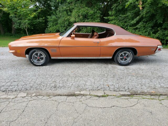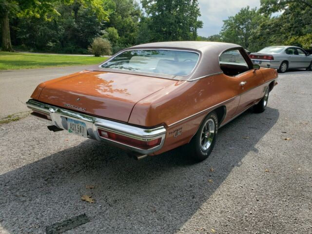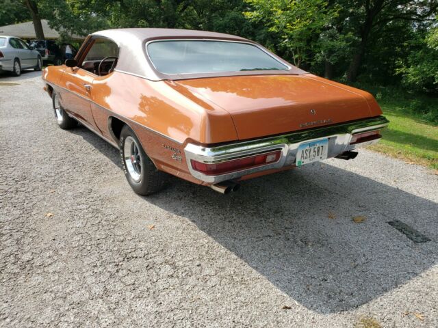 Engine is a 455 bored .030 and has a 068 code cam which is the factory cam in ram air GTO's it also has 96 cc heads code 7k3 from a 72 400 GTO that gives a 455 higher compression but runs great on pump gas ,ram air exsaust manifolds from a 69 400 GTO mated to pypes 3 1/2" stainless steel performance exsuast. Carburator is a 71 750 CFM Quadrajet that was rejetted with larger jets and is very responsive has the stock dual snorkel air breather. Transmission was rebuilt with new torque converter and shift improving kit. Rear differencal is 323 posi with recent axle seals and Auburn posi unit. Front suspension was completly replaced including "A' frame bushings and springs. Tires are old but in good shape. Air conditioning blows cold with new compressor, POA and expansion valves as well as dryer, however it will need to be looked at as it makes a periodic hissing sound like vacumme leak. Interior is nice but does have a pencil sized diameter hole in head linner and cracks on passenger side top of dash as seen in photos . carpet should be replaced. AM radio works and has a new speaker interior is probably a 7 out of 10. Body paint is still in very good condition with only a couple of minor chips and a couple inch long hairline scatches. front endura bumper has some cracks in old paint under the new as seen in photos. new NOS quarters were installed at time of painting as well as a NOS front valance panel, rear bumper is new rechromed.All new weather seals and new rubber bumper stops on fenders, doors and trunk. new door handles. too much new stuff to remember everything. Body is very solid , floor pans as seen in photos have minor rust and has fiberglass mat to deaden exsaust noise trunk floor is solid and clean. New vinyl top . Body is probably a 7.5 out of 10. I have 5 other 71 Le Mans and need to down size a bit. if you have any questions you can call or text me Dan at 563-210-0080 please no later than 9PM central. If i can't answer the phone leave message and i will return your call as soon as possable. Selling car as is, no warranty, feel free to inspect car. Car and title will be released once check has cleared or payment in cash. ,
