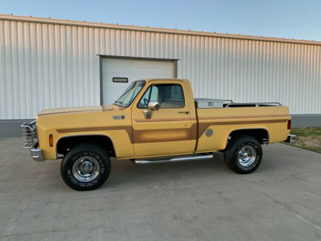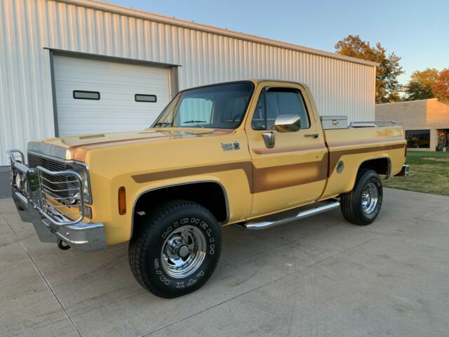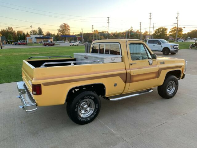 1978 CHEVY CUSTOM DELUXE 10MORE PICTURES BELOW!4X4350 CHEVY ENGINEAUTOMATIC TRANSMISSION.THE YELLOW EXTERIOR PAIRED WITH CUSTOM STRIPPING IS A GORGEOUS COLOR COMBO. SHE LOOKS LIKE SHE IS STRAIGHT OUT OF THE 1970'S! FEATURES INCLUDE; 350 V8, AUTO, 4X4, CHROME GRILL AND CRASH BAR, CHROME BUMPERS, STAINLESS MIRRORS, TOOLBOX, POWER STEERING, POWER BRAKES, CHROME WHEELS WITH MICHELIN LTX M/S TIRES. THE BODY IS STRAIGHT AND CLEAN. PAINT SHOWS VERY NICE. NO BUBBLES ANYWHERE IN THE PAINT. CLEAN TAN INTERIOR. TILT STEERING COLUMN. AFTERMARKET CD PLAYER. SEAT UPHOLSTERY, HEADLINER, ETC... IN VERY NICE SHAPE. DASH PAD IS CRACKED AND INTERIOR SHOWS SIGNS OF AGE AS IT IS 42 YEARS OLD BUT STILL PRESENTS WELL. CLEAR AND CLEAN TITLE. OVERALL A NICE SOLID SQUARE BODY TRUCK THAT IS GREAT TO DRIVE AS IS OR TAKE IT UP TO THE NEXT LEVEL. THESE TRUCKS ARE VERY POPULAR AND HARD TO FIND WITH A CLEAN BODY LIKE THIS. I DON'T HAVE MANY DETAILS ON THE HISTORY OF THE TRUCK OTHER THAN IT CAME FROM KENTUKY A FEW MONTHS AGO. IT IS SOLID, AND IT RUNS, DRIVES STOPS, AND STEERS WELL. MILEAGE SHOWS AS 46,156 BUT READS NON-ACTUAL ON THE TITLE SO TRUE MILEAGE IS UNKOWN.I CAN ASSIST ON SETTING UP TRANSPORT OF THIS TRUCK TO YOUR LOCATION.FEEL FREE TO CALL ANYTIME WITH ANY QUESTIONS (216)548-8375 (TIM) THIS TRUCK IS FOR SALE LOCALLY AND WE RESERVE THE RIGHT TO REMOVE IT FROM EBAY. THANKS FOR LOOKING AND PLEASE CALL WITH ANY QUESTIONS! Call any time!! (216)548-8375 TimVehicle DisclaimerThis vehicle is being sold AS IS, WHERE IS, with NO warranty, expressed, written or implied. The seller shall not be responsible for the correct description, authenticity, genuineness, or defects herein, and makes no warranty in connection therewith. Any descriptions or representations are for identification purposes only and are not to be construed as a warranty of any type. It is the responsibility of the buyer to have thoroughly inspected the vehicle and to have satisfied themselves as to the condition and value and to make an offer based upon that judgement. Every reasonable effort will be made to disclose any known defects associated with this vehicle, at the buyers request, prior to the close of the sale.