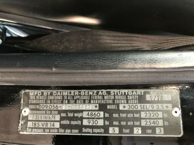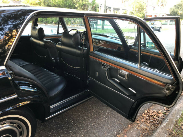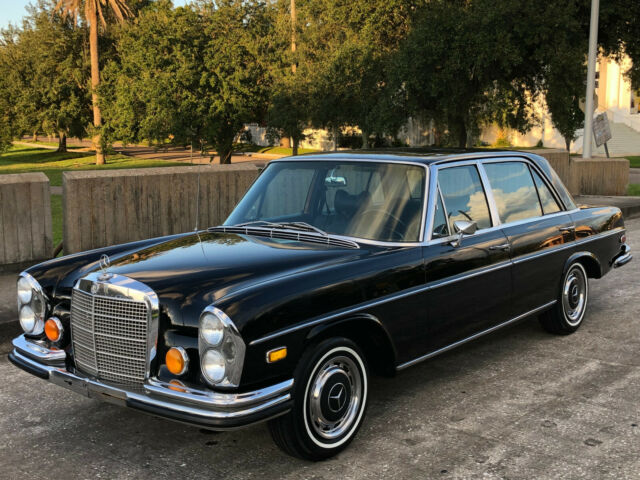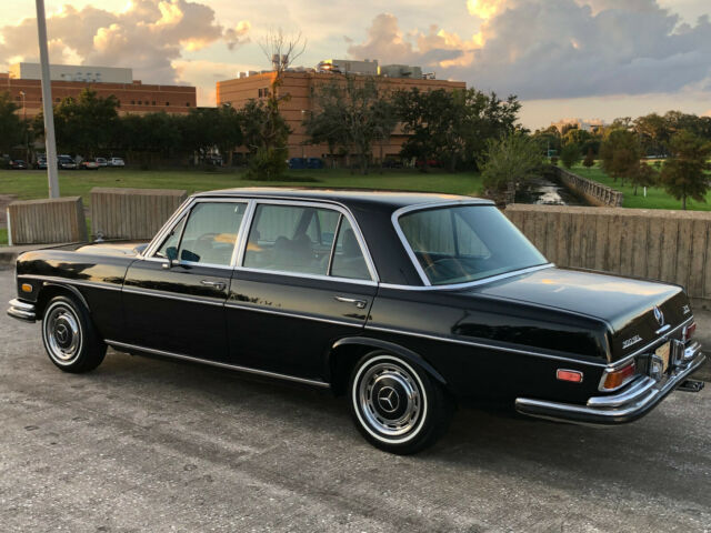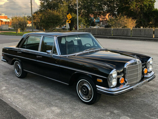 1971 Mercedes-Benz 300SEL Sedan (W109) VIN # 109.056-12-0034274-speed AUTOMATIC transmission.RARE DB040 Black factory paint with Black leather interior!BECKER Grand Prix AM/FM radio.BEHR air-conditioner (that blows cold!). Power locks.Power steering.Power windows (that work properly).Power sunroof.127447 miles. Two previous owners.California car - original and rust-free undercarriage. * * *Exterior in first and factory original DB040 Black paint (due to some scratches the trunk lid was the only panel that was ever repainted;, small but barely noticeable touch-ups on the edges of the doors, some on the hood;.).Odorless interior. Original wood on the dash as well as around all windows shows well.Heater works well. Heater control levers are like new. All original factory SEKURIT windows (no discoloration or chips). All original factory chrome bumpers and aluminum trim (bumpers do have couple of barely noticeable scratches).. Sporadically driven and fairly preserved car.All fluids are fresh.All 4 air-bags have been replaced with OEM new ones in 09/2008.Recent tune-up.Tires are 195/75-14" brand new white-walls.The fabric on the shelf under the rear window is fading and should be replaced.Left chrome surround for the window switches is broken (a new one has been ordered and will be replaced prior to car leaving). Original, solid and rust-free undercarriage with original factory undercoating. Original books/manuals, original trunk mat, original tools, jack and original spare tire are included and come with the car.This elegant and timeless classic is ready to be enjoyed immediately.Gorgeous and RARE color-combination! * * * This stunning Mercedes-Benz is only 48 years old and it is ready to be driven and enjoyed for the next 50 years. Due to the age sold as-is. $1000 deposit due immediately (non-refundable), balance within the next 5 days via bank wire transfer, cashiers check or cash. This is a WORLDWIDE SALE!* * *904-859-5561