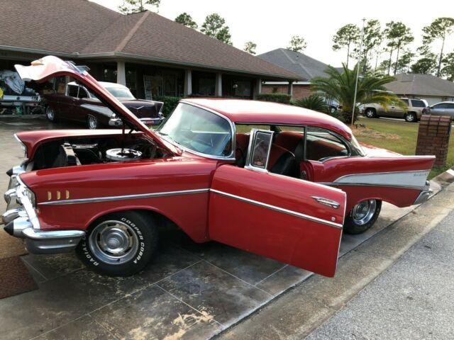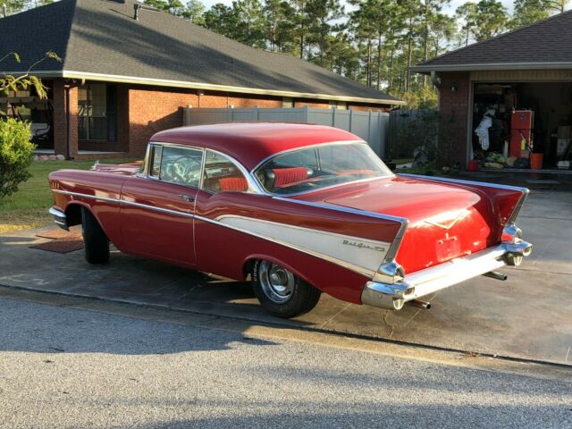 Perfect Christmas gift for yourself or that someone special!Conditionis UsedThis 1957Chevrolet Bel Air 2 Door Hardtop is truly one of those have-to-have vintagecars. It's one of the most popular cars ever built and retains its awesomeoriginal look, strong 350 V8 engine and factory suspension, so it drives andfeels like a '57 should. Matador Red is THE '57 Chevy color and for goodreason. It's a high-profile car no matter what color you paint it, but thebright red only emphasizes the look. Good straight bodywork is mandatory on acar of this caliber, so spending the extra time and money to get it right haspaid off here. The restoration was finished not that long ago, so it stillcarries a great shine that will sparkle at shows and makes other cars lookdownright shabby in comparison, although a multi-stage detail would really putit over the top if you want to go after some trophies. All the standard Bel Airglitz is there, including the anodized panels, polished stainless strips alongthe tops of the fins, and the brightly chromed bumpers. Accessories include BelAir-specific gold trim in all the right places along with those iconic hoodrockets, giving it a pure 1950s look that everyone loves. Correctly sorted anddripping with pure Americana, this is a beautiful hardtop that attracts a lotof attention everywhere it goes.Few interiors in cars at any price point in 1957looked better than Chevy's two-tone cloth and vinyl setup. Particularlydramatic in black and red, it paints a bright picture in an already verycolorful car. Lots of new items with this including carpet, gauges, windshield,fuel pump, underdash wiring harness among others. There's also a nice,black headliner above. The spacious, carpeted trunk is finished aswell and has enough room for just about any travel plans.Under thehood, the 350 ci still makes all the right 1957 sounds and has thatunmistakable small block growl any fan of classic cars will find familiar. It'sa nicely detailed block that features a Rochester 4-barrel carburetor, aluminumintake, an HEI distributor so it's powerful and quick to rev. Long-tubeheaders that feed a dual exhaust for a bit more horsepower so it's a great-soundingsystem that's subtle but authoritative with a nice, deep rumble. Chevy orangepaint on the block, a chrome air cleaner with matching chrome valve covers and a bigradiator upfront not only serves a larger purpose, but also make you proud tolift up the hood and show off a little bit. The TH350 3-speed automatictransmission makes this is an easier car to drive, and it spins anoriginal-style rear end. Flashy Rally wheels are a traditional look withCooper Cobra Radial G/T, 15 Rims, raised white lettered radials toreinforce the period look with improved handling.Restoreddriver that you can leave to drive as is or finish, this is the '57 you've beenhoping to find, combining all the things that make Tri-5 Chevys so popular,with impressive presentation. Call now! Contactme now at 850-529-2391 for more details! Will not ship vehicle until full payment confirmed.