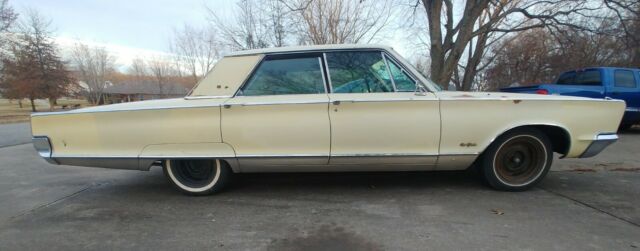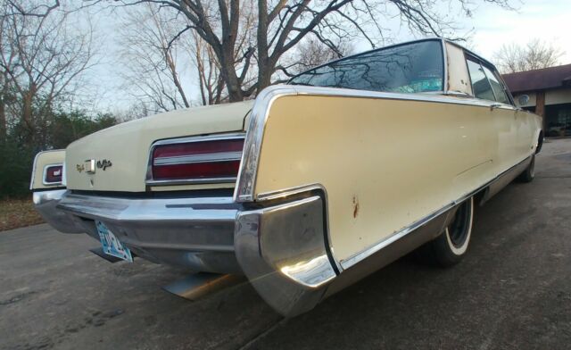 Body and frame are solid with little rust, some dents and dings, floor and trunk pan are solid. If left to sit a few weeks, upon first start engine will smoke some but clears up. I have two videos on "youtube" of start, walk around and drive. Can be viewed under title search; "Warren 1966 new yorker run." And; "Warren 1966 new yorker drive." Odometer reads approximately 64,000 miles, original or 164,000? I do not know? Power seat, power windows, power drum brake and factory a/c. A/C not working. Drivers window is only window will operate. Headlights, brake/tail lights and directionals work. Rear passenger door panel partially disassembled to have a look at the window motor, all parts are there. Glove box also taken apart with pieces parts of it in the trunk (previous owner?) Driver seat torn, driver side rear passenger door does not open from the outside. Also in the trunk what looks to be the original air cleaner assembly, carburator, and jack. Spare tire and wheel center caps. All goes with the car. Currently has an Edelbrock 4 bbl mounted on the engine. Fender tag, VIN tag and original Chrysler warranty "Certicard" all present. Car is currently registered in my name with a clear title. If have any questions can message me here or call or text me at 918-850-1328.Thanks for looking!Warren. P.S. In one picture might notice driver side rear wheel is chalked. Brakes/"park" works fine but had the car jacked to one side for some "underneath" pictures, and chalked to keep from rolling.