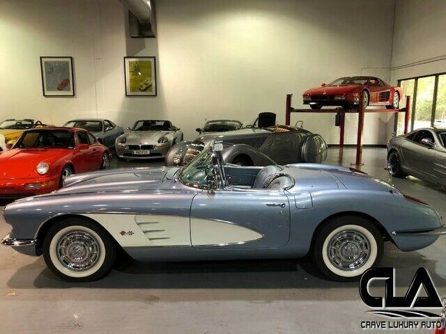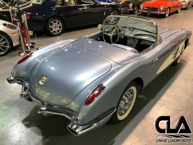 832-415-3204832-415-3204 1234567891011121314151617181920212223242526272829303132333435363738394041424344454647484950515253545556575859606162636465666768of68 Full size photos Full size photos 1959 Chevrolet Corvette Convertible V8 Manual Frost Blue Stock #: P100414 Exterior Color: Frost Blue Interior Color: Blue Body Type: Convertible Transmission: Manual Engine: V8 Title Condition: Clear Vehicle Description Client Advisor - 1959 Chevrolet Corvette Convertible. 283ci V8. This Corvette is a fantastic driver quality restoration. We have some restoration history, service work and receipts that compliment this Corvette. (Photo of paperwork in with the full set of photos.) Restoration was performed in the late 90's and early 2000's. Front brakes have been upgraded to discs. This corvette is Not a numbers matching example. This Chevrolet, like all previously owned vehicles here at CLA went through our own rigorous inspection process performed by our Master Technicians. Call to schedule your appointment today! Crave Luxury Auto is located Just north of Houston, Tx in The Woodlands. Our service center is just across the street from our showroom. Please call us with any questions you have in regard to this vehicle at 832-415-3204. Vehicle Warranty New Vehicles come with a full-factory warranty. Used vehicles may have a remaining-factory warranty, but please contact us for the warranty details specific to this vehicle. Terms and Conditions Payment Options We accept the following payment methods: - Cashier's Check/money order Vehicle Pickup & Shipping All shipping charges are buyer's responsibility. Finance, Warranty, Shipping question? Call the dealer at 832-415-3204 General Terms Notice to Bidders: All of the vehicles we list on eBay are for sale locally. We reserve the right to end an auction early. All cars are immediately ready for delivery upon sale. Deposit: We require a non-refundable $500 deposit within 48 hours of winning the auction. Please call to make arrangements for payment. Payment Types: Cash in person, Certified Funds, Institutional Financing All sales transactions must be completed within 7 calendar days of auction close. Prices subject to change without notice and do not include Title, License, Registration Fees, State or Local Taxes or Processing Fees, if any. Please contact seller first for vehicle availability. Although every effort is made to present accurate and reliable information, use of this information is voluntary, and should only be deemed reliable after an independent review of its accuracy, completeness, and timeliness. It is the sole responsibility of the customer to verify the existence of options, accessories and the vehicle condition before time of sale. Any and all differences must be addressed prior to time of sale. No expressed or implied warranties, including the availability or condition of the equipment listed is made. EPA mileage estimates for comparison purposes only. Actual mileage may vary depending on driving conditions, driving habits, and vehicle maintenance. Fees and Taxes Sales tax, title, license fee, registration fee, dealer documentary fee, finance charges, emission testing fees, and compliance fees are additional to the advertised price. Vehicle is listed locally, we reserve the right to end the auction at any time.