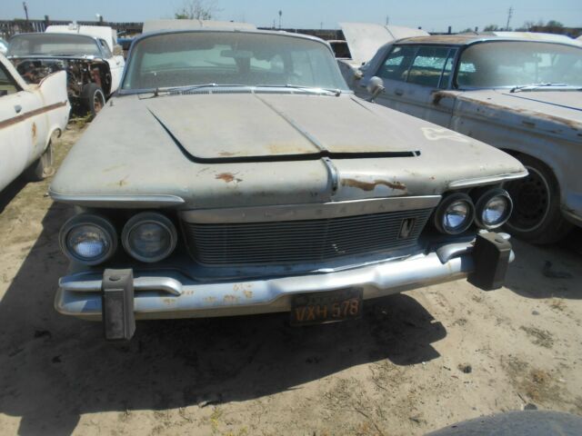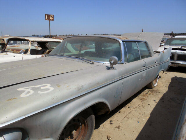 1961 Imperial 4 door hardtop project car. Blue w/ blue interior. 429 V8 engine Rust free California car, very solid. There is one hole in the roof about the size of 3 fingers and that's about it for rust on the whole car. CA black plate car. Clean title. Car is nearly complete, I have most of the parts that are missing, they will be included with the car (i.e radiator, air cleaner, carb, steering wheel, horn ring, horn pad, window switch, misc trim). There is no instrument cluster, and the rear bumper was stolen off the car before it was moved. I can provide a list of people who have rear bumpers and instrument clusters. I have a rear bumper at my house but it would have to be shipped Everything else is there. The passenger side rear door has a dent in it, I will include a replacement piece of trim. Car will roll and steer (has steering wheel now). It has not run in many years (intake opening has been covered). The chrome and stainless trim is nice. Car has power windows and cruise control. It's was a sky blue color though it looks grey in pics. Shipping is the responsibility of the buyer, however I can provide a recommendation for a good shipping broker. The car needs to be moved within a reasonable amount of time, currently it is at a storage lot. Non refundable deposit through PayPal, for the balance I prefer check, MO, or bank wire. I will happily work with any international buyers. Full payment due in 7 days. I will do a trade or partial trade on certain parts I need for Mopar 57-60, 59 Cadillac, and 75-78 Mercury.