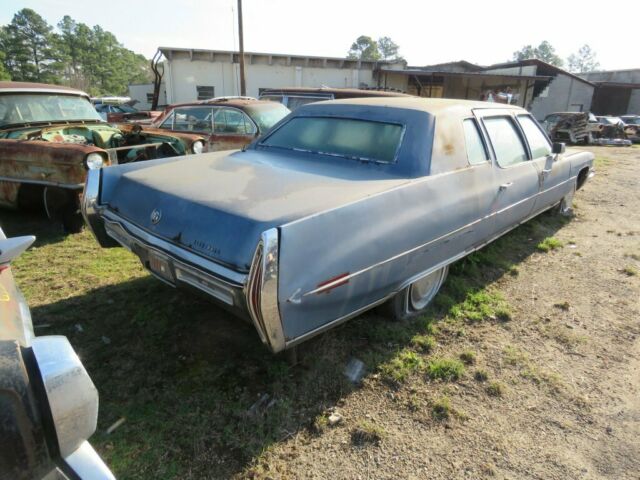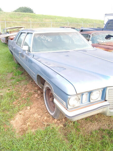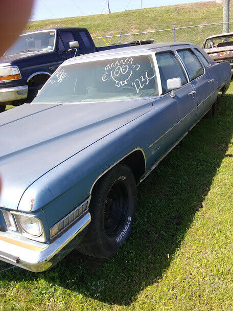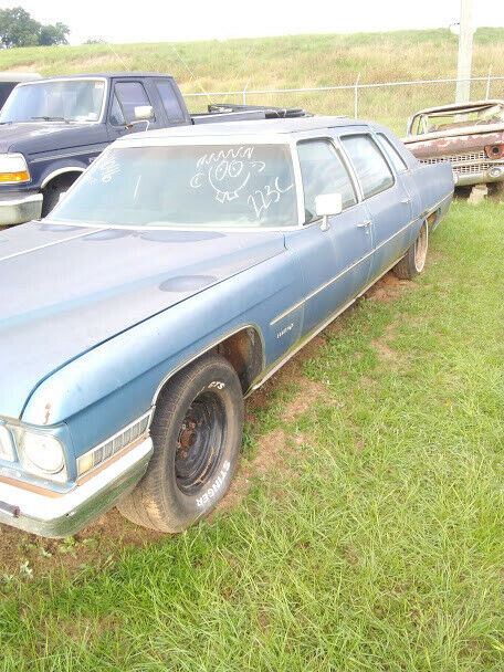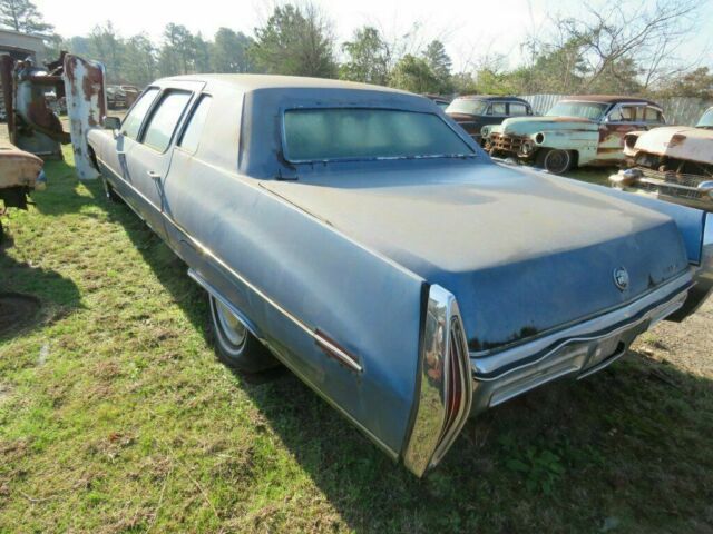1972 Cadillac Fleetwood 75 limousine. Only 995 of these were built and they cost nearly $10,000 when new. Complete car. Blue w/ black interior. 472 V8 engine, TH400 transmission. The skirts and hubcaps are in the car, tires were put on the car so it would roll. (First 2 pics are from before tires were mounted, all photos are recent). This is is a Texas car and is very, very solid-- clean dry sheet metal. Car is straight, hasn't been hit. Glass is good. It's very dirty inside and out and hasn't been run in a good while. The rear AC unit is there. Nothing is missing. Chrome bright and shiny. Really neat car that would be a pretty easy project. Have a clear Texas title for it. Priced to sell!Car will roll and steer and has good tires on it. Shipping is the responsibility of the buyer, however I can provide a recommendation for a good shipping broker. Car must be moved within 2 weeks or the buyer needs to pay the storage of $50 a month. It can sit where it's at as long as you want, if you pay the storage. Non refundable deposit through PayPal, for the balance I prefer check, MO, or bank wire. I will happily work with any international buyers. Full payment due in 7 days.