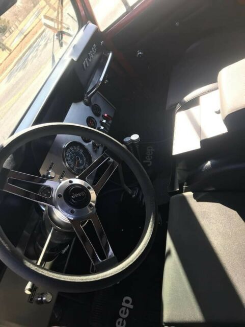 BODY MODIFICATIONS:-Cj Body, stripped and repaired to new, new custom Corvette Orange 2 stage paint with hardtop, bikini, and soft top (Best Top), all in black.-Rhino coated underbody and interior metal surfacesEXTERIOR ACCESSORIES:-Front Rough Country Guard with chrome grille-KC fog and sport lights mounted on front end-Smitty built 8K winch XRC-Hood lift kit-Chrome hinges and vent intake and latches-Smitty built Nerf bars-Carr light bar on roof with 4 KC spot lights and covers-Custom rock doors (tubular, also has full doors as well)-Tail light guards-Receiver hitch-Custom exterior tire mount with matching spare and HiLift Jack-Roll bar covers-EK Motor Sports Grab Handles-Fire Estinguisher and flashlight in holderINTERIOR:-Custom Rugged Ridge Seats and 4 point harness-Tuffy locking center console-Custom steering wheel-Stainless steel dash face-Chrome plated windshield wiper motor cover-Chrome glove box door and grab handles-Custom aluminum knobs for lights, wipers, hot air and temp-Sun Pro tachometer 8K-Toggle switches to control external spot and fog lamps-Roll cage with covers-B&M shifter-Custom dual shifter for transfer in and out, high and low-Aluminum tool storage box behind rear seatENGINE AND TRANSMISSION:-Custom built Turbo 350 automatic transmission and drive shaft-Custom built GM LT1 350 Cubic inch V-8 with chrome valve covers-Chrome plug wire covers, alternator, water pump, intake tubes, fuel rail, alternator bracket, throttle body cover-Locar Oil and Trans dip sticks and tubes, Locar Linkage for throttle and kickdown-Spectre air filter and chrome air intake tubes-Corvette fuel rail covers-Custom ceramic coated headers (in and out), with Magna Flow 2.5" mufflers and aluminized exhaust pipes-Aluminum radiator (4 core) with Electric fanFRONT AND REAR ENDS, BRAKES, SUSPENSION:-Frpmt disc brakes, drum rear brakes-Pro Comp lift kit (4")-Dana 300 transfer case-Posi traction rear end, limited slip front end-Warn locking hubs on front-Custom shocksTIRES AND WHEELS:-Mickey Thompson Side Biters 15"x10" (5)-Mickey Thompson Baja MTZ Radials 33x12.5x15 (5)AUDIO SYSTEM:-Clarion witer proof AM/FM/CD player-Kenwood amp-Polk audio Speakers )4) 6x9 and (2) 5-1/4'sBUY IT NOW REQUIRES IMMEDIATE DEPOSIT OF $1000. Call Roan at 707-324-9531